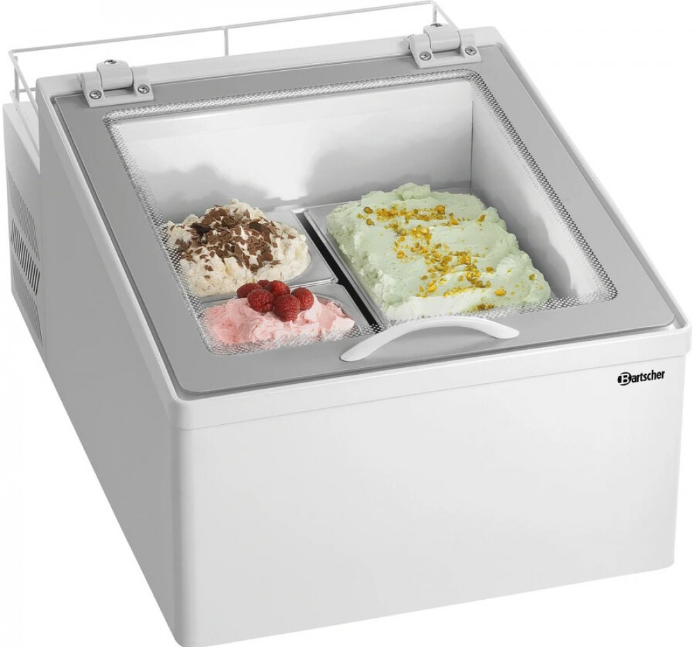 Optimální skladování zmrzlinových výtvorů - vitrína na zmrzlinu 2x5L-F je řešením pro vystavení čerstvě připravených dezertů v potřebných podmínkách. Nízko položené nádoby minimalizují riziko vzniku námrazy.Funkce automatického rozmrazování: ne Přední sklo: Rovné Typ dveří: Dvířka zvedací Poloha dveří: horní strana Závěsy dveří: Horní Digitální displej: ano Ovládání: elektrickéVypínač: ne V sadě: stojan na nádoby GN Barva: Bílá Typ skla: Dvojité skloOchranné sklo: ano Hloubka nádoby: 150 mmObjem: 10 lTeplotní rozsah od: -15 °CTeplotní rozsah do: -18 °CRegulace teploty: Elektrická Chladící médium: R600a / 0,022 kg Klimatická třída: 4 Energetická třída: A (nr UE 2019 / 2018) Spotřeba energie: 537 kWh / rokPříkon: 0.184 kWNapětí: 230 V Frekvence: 50 Hz Vnitřní osvětlení: LED Objem: 2 x nádoba 1/3 GN s obj. 5 litrů nebo 4 x nádoba 1/6 GN s obj. 2,5 litruBalení neobsahuje: nádobu GN Materiál: Ocel, Plast šířka: 475 mmhloubka: 730 mmvýška: 355 mmváha: 25.0 kg