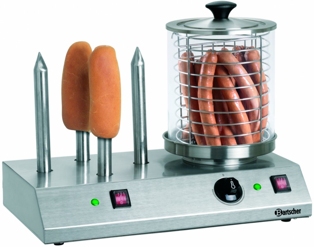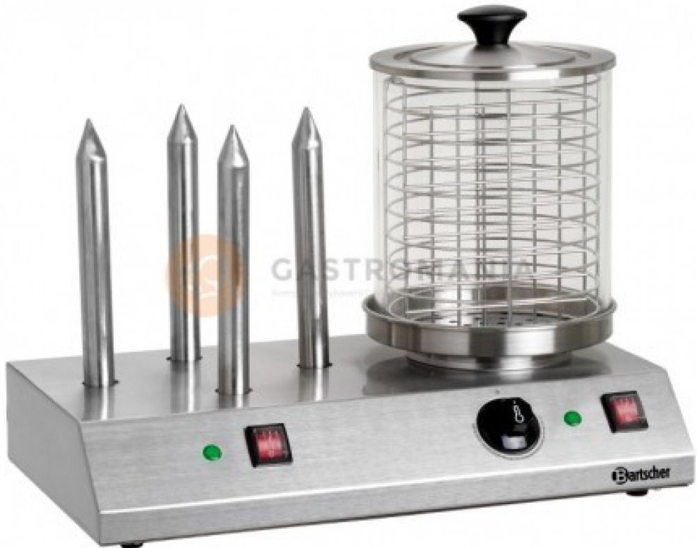Ohřívač párků a klobásek a housek na Hot-dogy, Bartscher A120408 je vyroben z nerezové oceli se skleněnou ohřívací nádobou o Ø 20 cm, a výšce 24 cm. Má také speciální 4 bodce na ohřev housek, bagetek nebo rohlíků Regulace teploty od 30°C do 100°C. Příkon 0,96kW, váha 7,63kg. Hodí se do menších gastronomických zařízení, na benzínky, foodtrucky, fastfoody nebo jiná místa, kde se podávají hot-dogy a ...