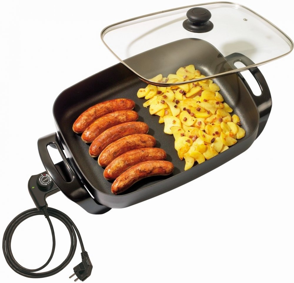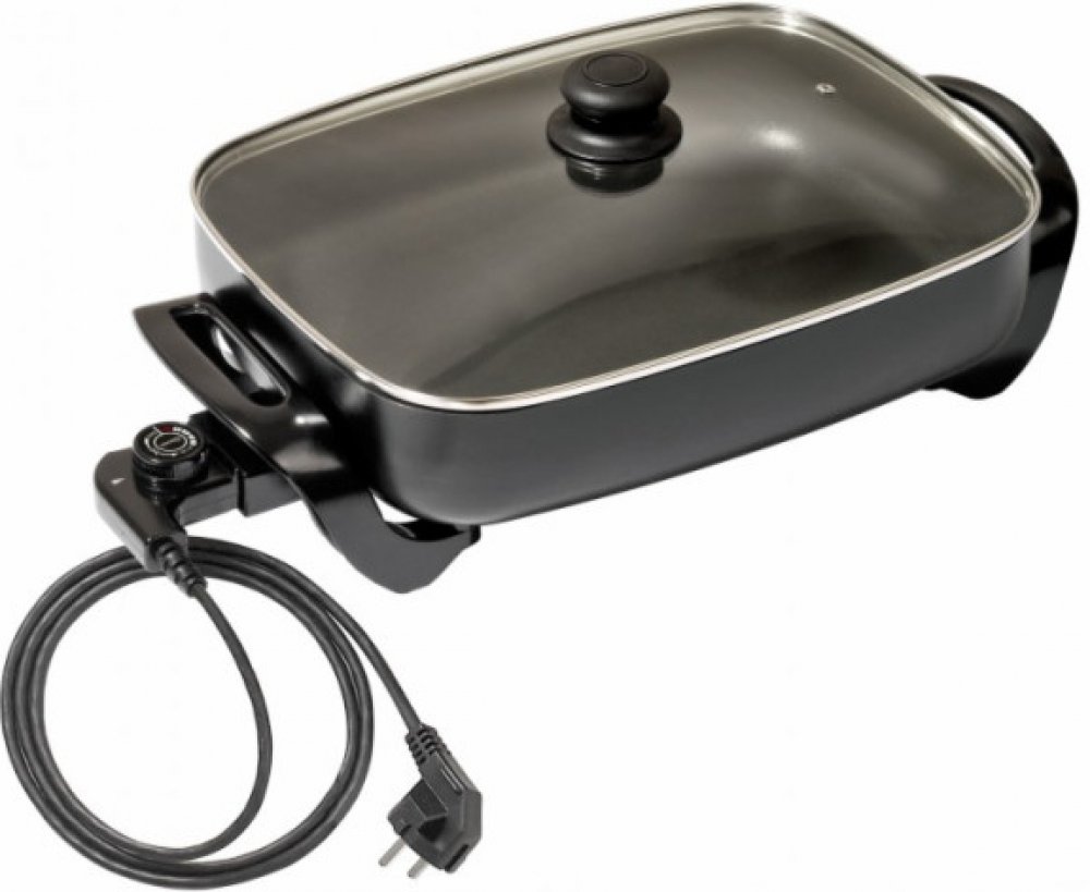 *Multifunkční pánev, Bartscher 150340* je vyrobena z hliníkového odlitku. Tato pánev je praktické vybavení a hodí se všude tam, kde je možnost připojení k elektřině. Oceníte ji během grilování na zahradě, v otevřených bufetech či během různých festivalů a podobných venkovních akcí. Vnitřní rozměry: 370x285x80 mm. Součástí balení je skleněná poklice.