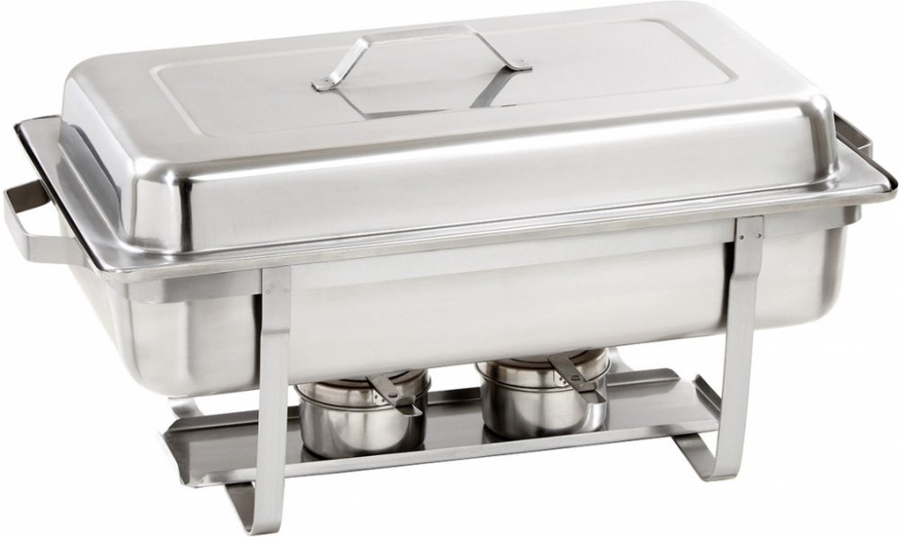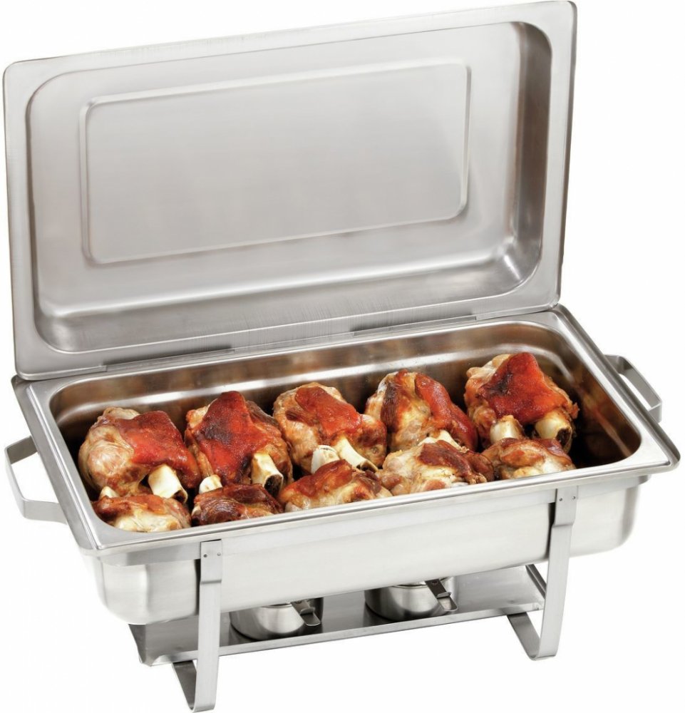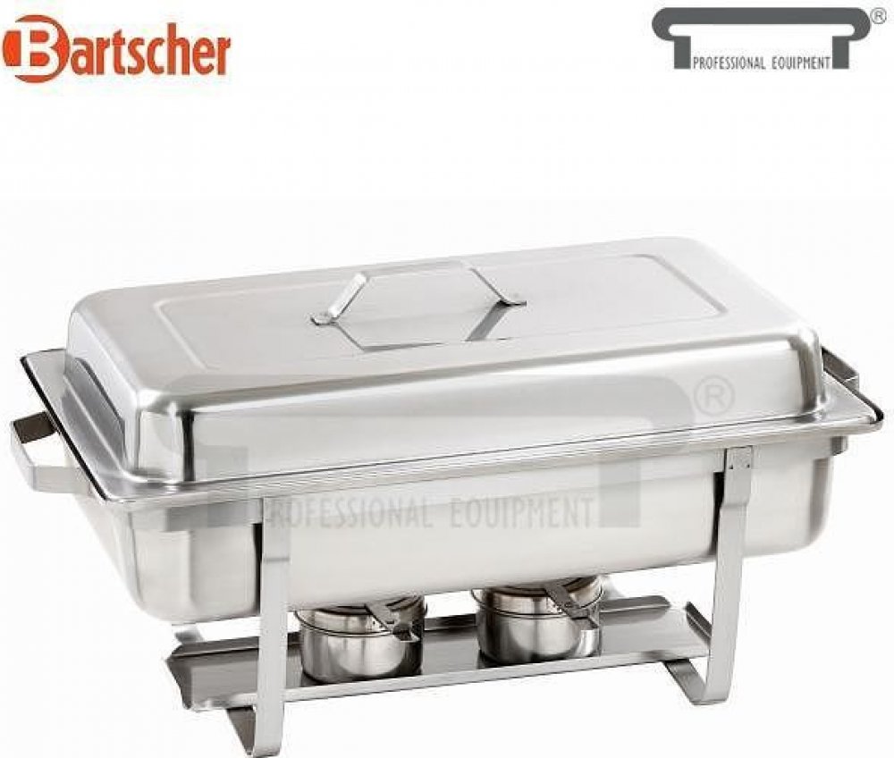 Chafing, Bartscher 500494 má rozměry 605x350x305 mm. Je vyroben z nerezové oceli. Má odnímatelné víko s rukojetí, které je na jedné straně ukotvené. Nádoba chafingu je ohřívána 2 ohřívači, které se plní speciální hořlavou pastou. Je skvělým pomocníkem při banketech, večírcích a na hromadných akcích.