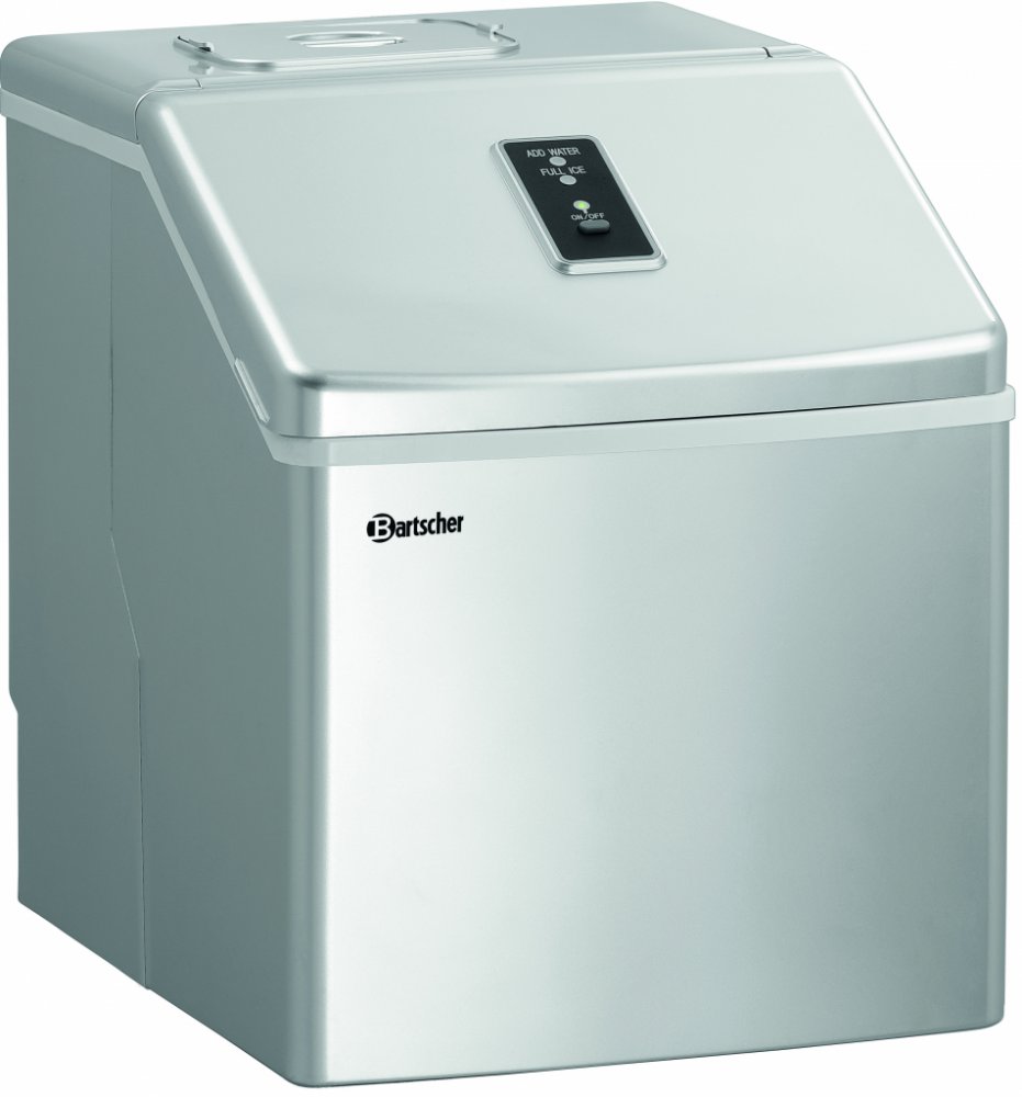 Výrobník kostek ledu "Compact Ice K":- šedý plastový kryt,- Přepínač velikosti kostek ledu (tvar kostky): S malé - L velké,- Kompaktní výrobník kostek ledu pro výrobu průhledných kostek ledu,- Výroba: 24 kostek za cyklus,- množství náplně: 1,5 litru,- kapacita: přibližně 10 kg / 24 hodin,- nádoba na led: cca 1 kg,- příkon: 150 W / 230 V 50 Hz,- rozměry: Š 306 x D 365 x V 360 mm,- hmotnost: 12,25 kg,- zařízení není určeno pro nepřetržitý provoz v průmyslových provozech.