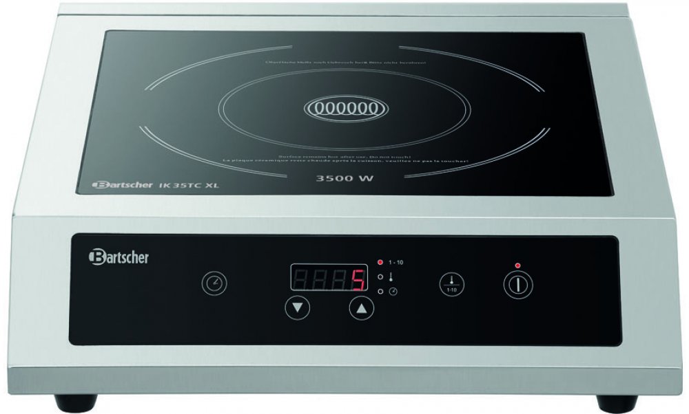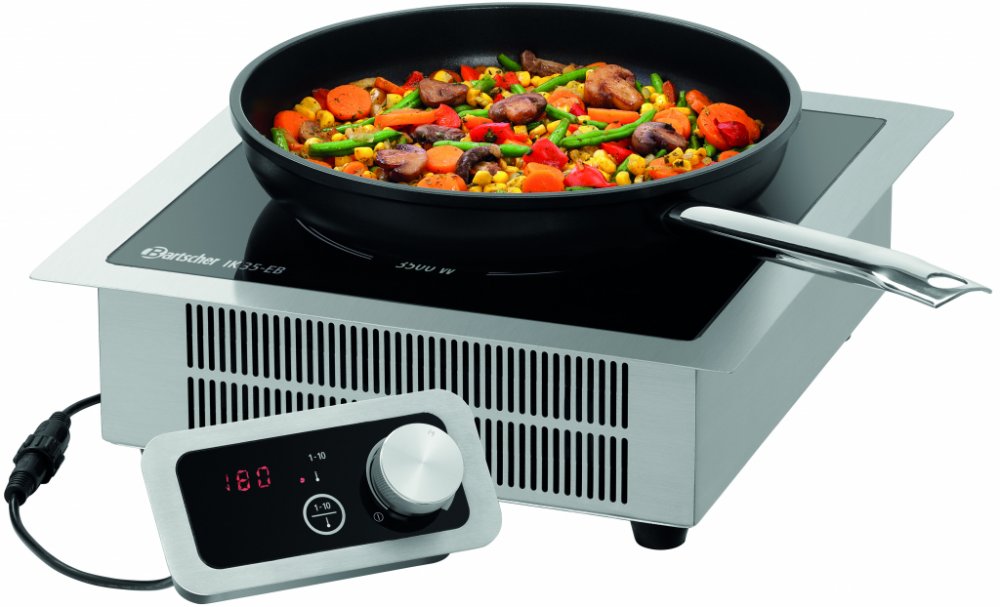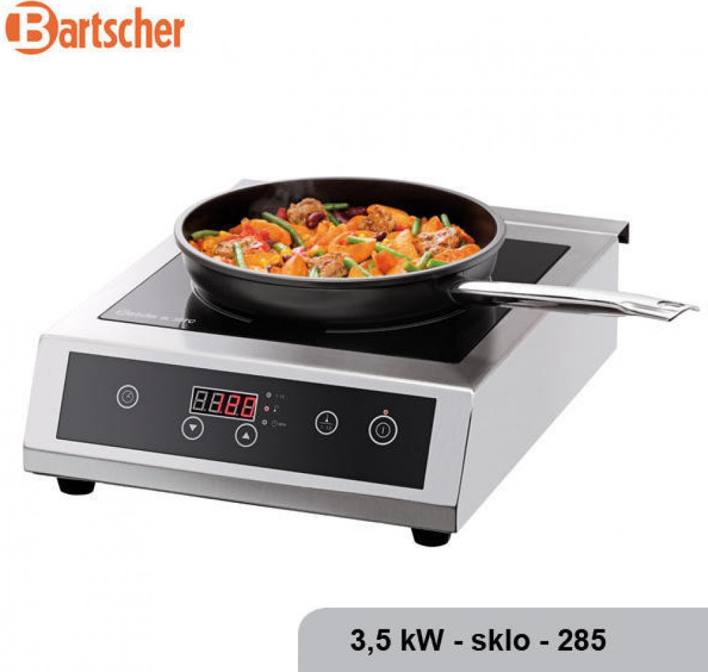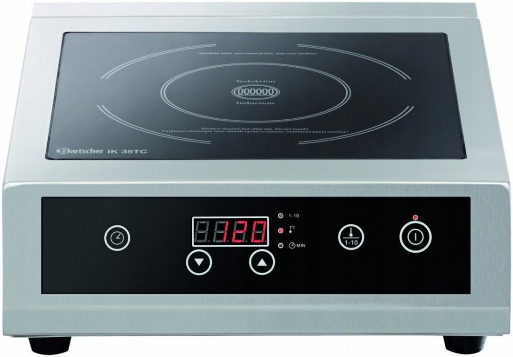 Domácnost Indukční vařič Bartscher IK 35-EB lze mnohostranně využít - od bufetu, přes catering až po tzv. "foodtrucks". Vizuálně atraktivní výkonný indukční vařič se samostatným ovládacím panelem. Vařič je vyroben z chromniklové oceli 18/10 s varnou skleněnou plochou. Teplotní rozsah od 60 °C do 240 °C, interval nastavení teploty je 20 °C. Průměr plochy pro vaření je 210 mm, varná deska o rozměrech 310 x 225 mm (Š x H). Oddělený elektronický dotykový ovládací panel s délkou kabelu 0,8 m, digitální displej, kontrolka ON/OFF, detekce pánve, 10 úrovní výkonu, regulace výkonu, ukazatel teploty a času. Z bezpečnostních důvodů dojde po určité době nečinnosti přístroje k jeho automatickému vypnutí.