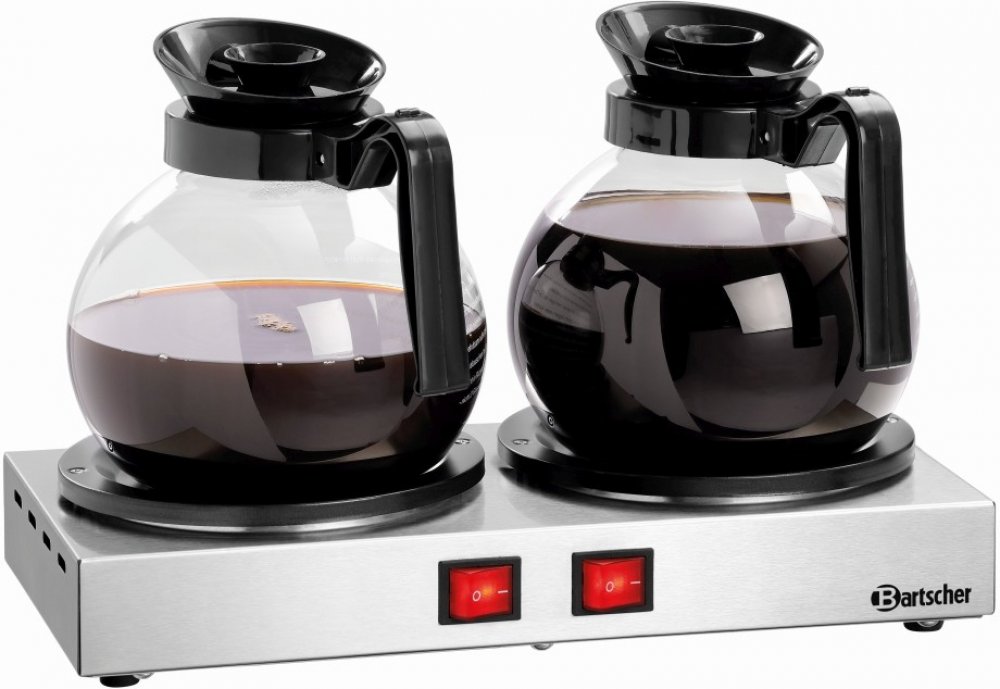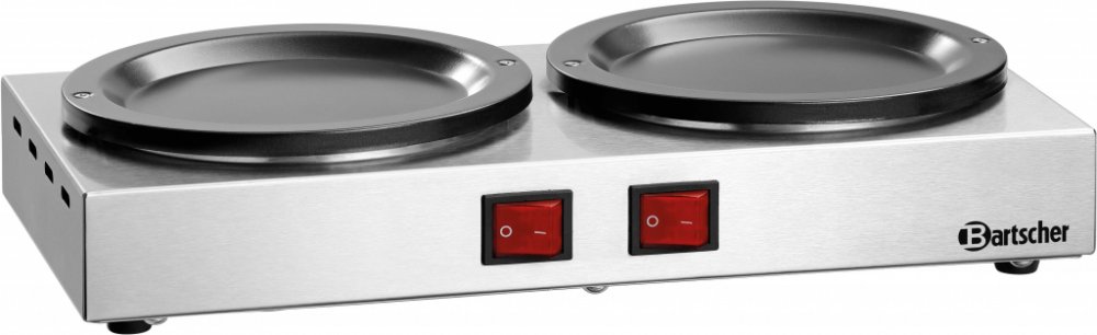 *Ohřívač pro konvice Bartscher A190105* o rozměrech 358x210x70 mm je malé zařízení, díky kterému lze podávat vždy teplé nápoje, ať už v jídelně či hotelovém bufetu. Každá z topných ploch je vybavena spínačem pro regulaci teploty, v různých časech, pro různé nápoje zvlášť. Ohřívač má příkon 0,2 kW/220-240 V.