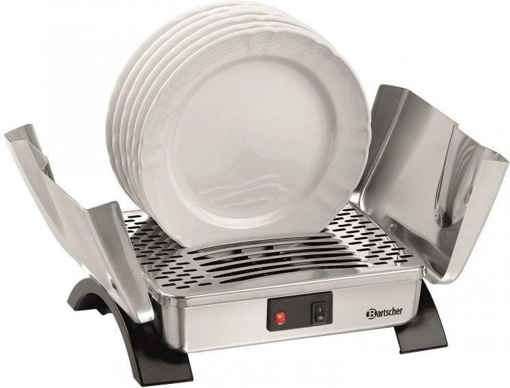 Domácnost Sklopný ohřívač talířů z nerezové oceli a odolného plastu. Ohřívač talířů až na 12 ks talířů průměr 280 mm, teplota do 65 °C. Světelná kontrola, ZAP/VYP. Příkon: 0,3 kW / 230 V / 50 Hz. Rozměr: Š 320 x H 260 x V 105 mm. Hmotnost: 2,9 kg.