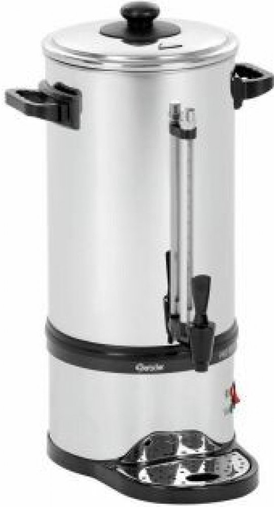 Kávovary a příprava kávy Kávovar z nerezové potravinářské oceli, indikátor úrovně naplnění, maximální výkon cca 60 - 72 šálků. Indikátor odstranění vodního kamene. Objem: 9,0 lt. Doba vaření 9,0 lt.: 60 minut; minimální vařené množství: 4,5 lt. 2 oddělené topné systémy pro funkci vaření a udržování teploty. Příkon: 1,15 kW/230 V. Rozměry: pr. 220 mm, 545 (V) mm. Hmotnost: 5 kg.