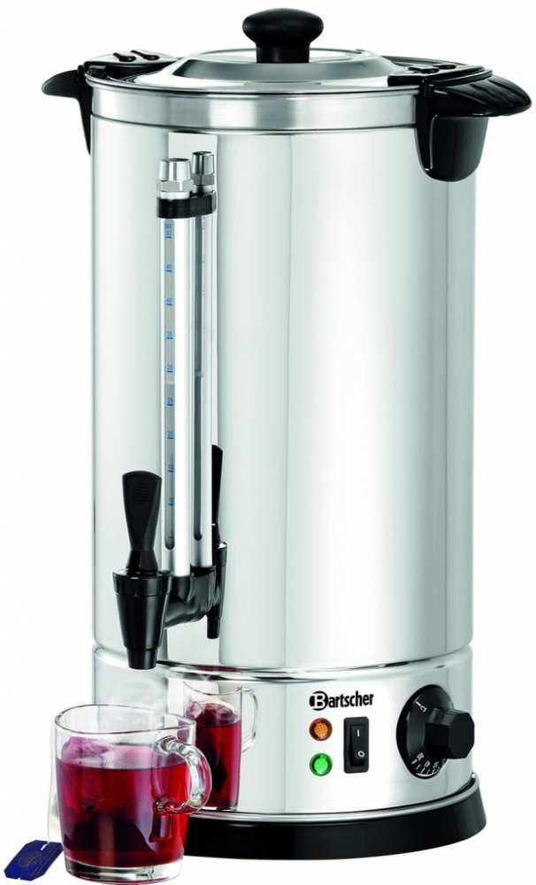 Zásobník horké vody je určen k vaření a udržování teploty vody. Nízké tepelné ztráty, úspora energie. Plášť a víko z nerezové potravinářské oceli. Dvouplášťové provedení. Indikátor úrovně naplnění. Objem: 8,5 litrů. Termostat lze nastavit na 30 °C až 100 °C. Příkon: 1,6 kW/230 V. Rozměry: pr. 225 mm, 470 (V) mm. Hmotnost: 2,65 kg.Parametry: objem l: 8,5 l