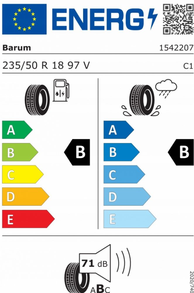 V (=240 km/h) 235 R18 50 97 letní Barum 71 dB B B B B 1909139