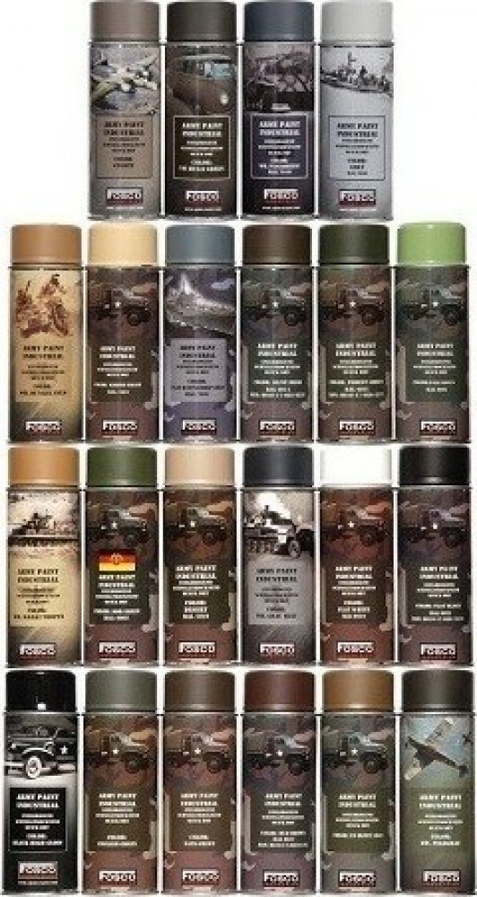 Armádní aerosolová barva pro interiéry uzavřených obrněných vozidel. Od holandské značky Fosco Industries.Pro konečnou úpravu kovů, dřeva a jiných materiálů, vhodná jak k venkovnímu, tak i vnitřnímu použití.Rychleschnoucí barva - na dotek 10- 20 minut, na používání 45 minut, plně odolná proti lupěnatění po 16 hodinách.Vlastnosti: maskovací barva ve formě aerosolu ve spreji určeno na zamaskování zb...