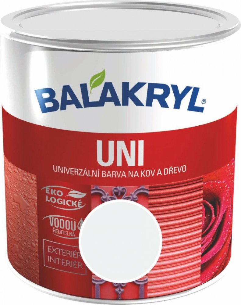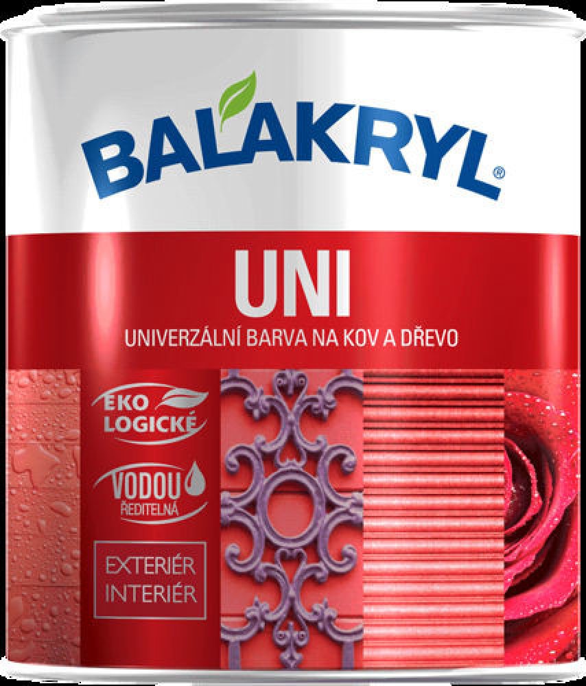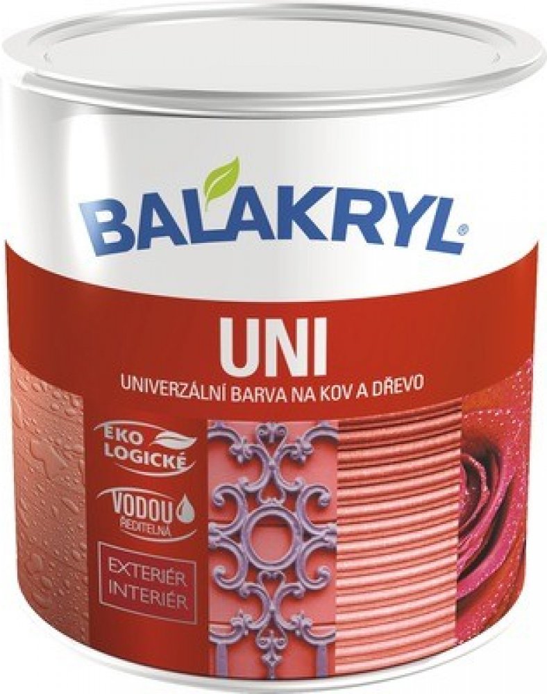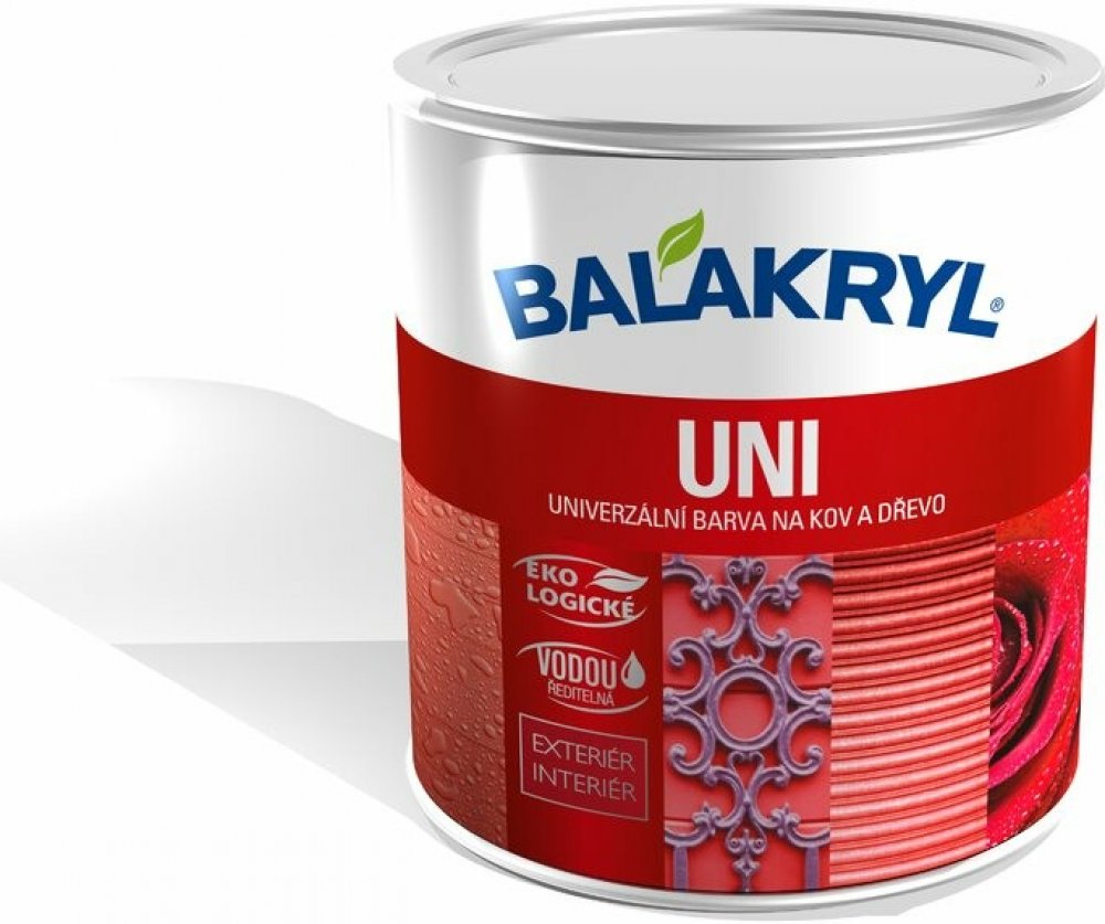 Lesklý bílý krycí email Balakryl UNI o hmotnosti 700 g v červenohnědé barvě je ideální na nové základní i vrchní renovační nátěry. Je aplikovatelný na kov, dřevo, beton, omítky a další povrchy. Jeho použití je možné jak v interiéru, tak i v exteriéru. Balakryl UNI je snadno ředitelný vodou, nátěr povrch dlouhodobě chrání a dodává mu lesklý vzhled. Zároveň poskytuje vysokou odolnost vůči povětrnostním vlivům. Barva je zdravotně nezávadná, hodí se pro nátěry hraček, dětského nábytku i povrchů v přímém kontaktu se suchými potravinami. Aplikace se doporučuje minimálně ve dvou až třech vrstvách.