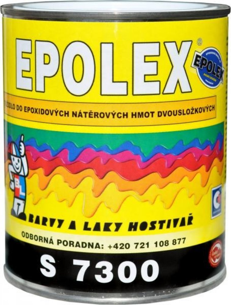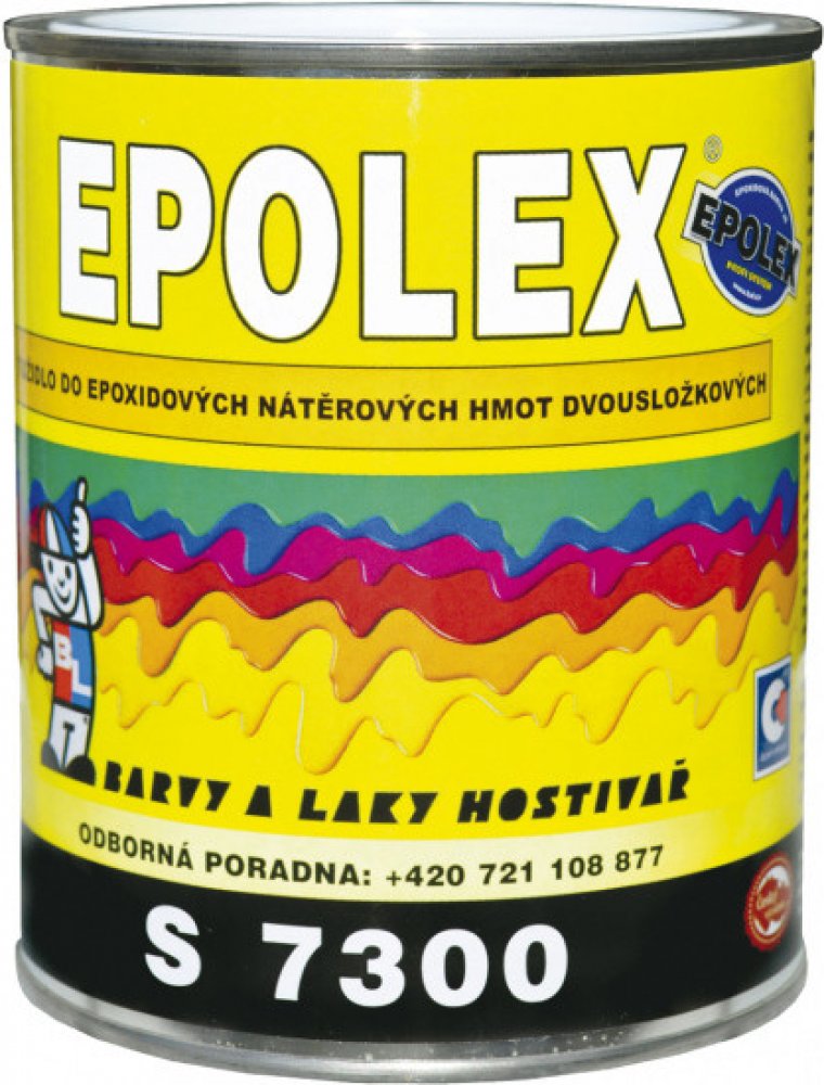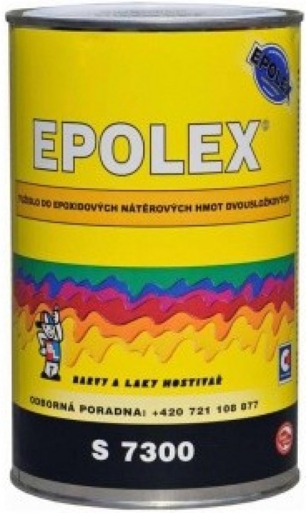 Parametry výrobku Epolex S7300 tužidlo k dvousložkovým barvám:Konzistence 60 - 260 s (O 4 mm Ford).Hustota / kg/m3 / cca 960 kg/m3.Hodnoty pro stanovení emisních limitů: VOC: 0,48 kg/kg TOC: 0,41 kg/kg.Složení a charakteristika výrobku Epolex S7300:Výrobek je roztok modifikovaného tvrdidla na bázi aduktu polyalkylenpolyaminu a středně molekulární epoxidové pryskyřice ve směsi organických rozpouštědel.