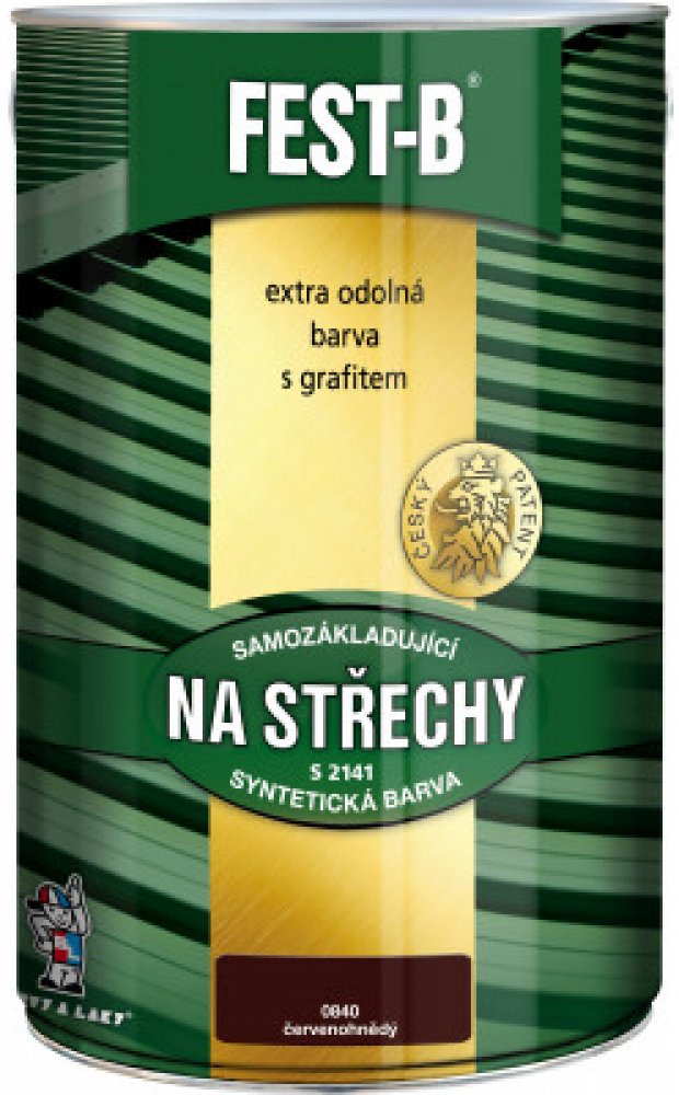 Technické vlastnosti barvy na střechy a železo FEST-B 2v1:- podklad ocel, pozinkovaná ocel (zoxidovaná)- prostředí exteriér- příklady plechové střešní krytiny, okapy, ocelové konstrukce a pod.- nátěr na pozinkovaný plech je možný nejdříve po 12 měsících působení povětrnostních vlivů- vydatnost 7 - 8 m2/ 1 kg na jednu vrstvu- zaschlý proti prachu do 2 hodin- proschlý do 24 hodin- ředidlo S 6006 (štětec, váleček), S 6001 (stříkání)- způsob aplikace štětec, váleček, stříkání