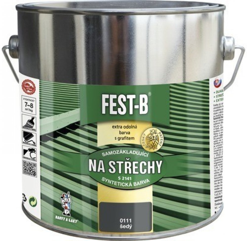 Technické vlastnosti barvy na střechy a železo FEST-B 2v1:- podklad ocel, pozinkovaná ocel (zoxidovaná)- prostředí exteriér- příklady plechové střešní krytiny, okapy, ocelové konstrukce a pod.- nátěr na pozinkovaný plech je možný nejdříve po 12 měsících působení povětrnostních vlivů- vydatnost 7 - 8 m2/ 1 kg na jednu vrstvu- zaschlý proti prachu do 2 hodin- proschlý do 24 hodin- ředidlo S 6006 (štětec, váleček), S 6001 (stříkání)- způsob aplikace štětec, váleček, stříkání