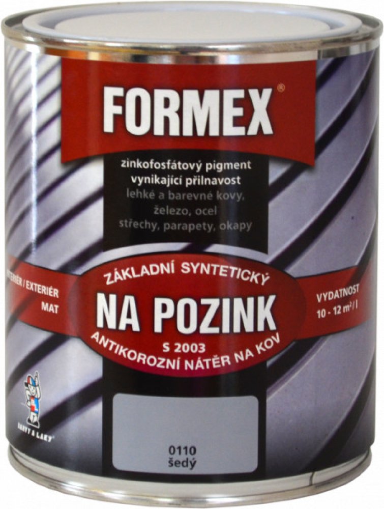 1. 1x nátěr barvou FORMEX NA POZINK S2003. Zasychá při teplotě kolem 20 °C. Zasychání lze urychlit přisoušením do 80 °C. Nátěr zaschlý na vzduchu je možno již za 1 hodinu přestříkat syntetickým nebo nitrocelulózovým emailem, optimální tloušťka jedné vrstvy je 35-40 µm.