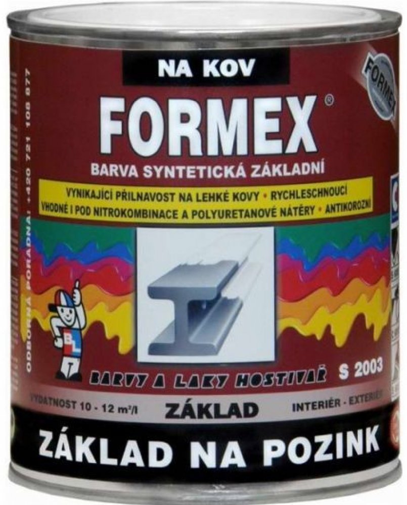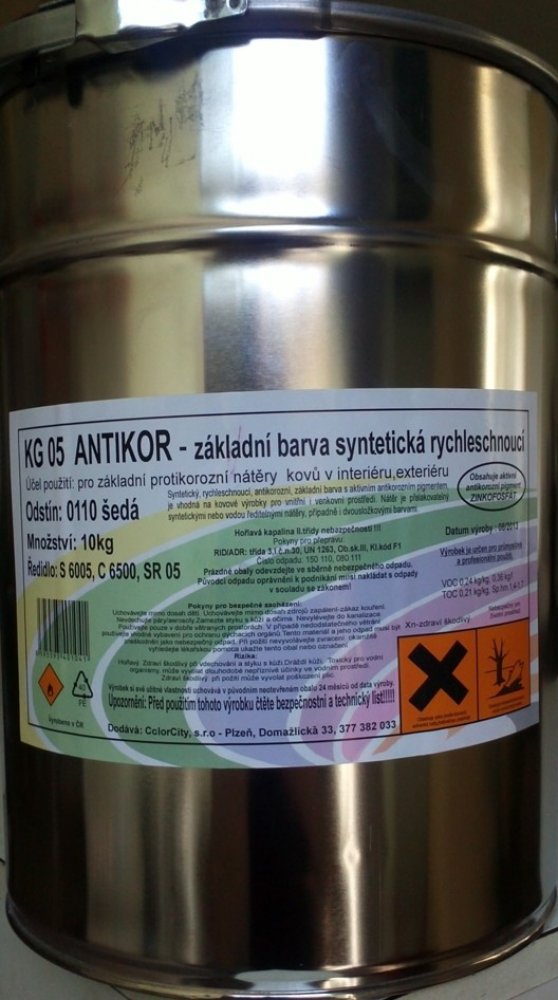 Základní syntetická antikorozní barva určená k nátěrům lehkých barevných kovů a železa.