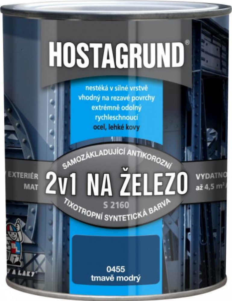Hostagrund 2 v 1 S2160 je syntetický antikorozní nátěr určený pro jednovrstvé venkovní i vnitřní nátěry