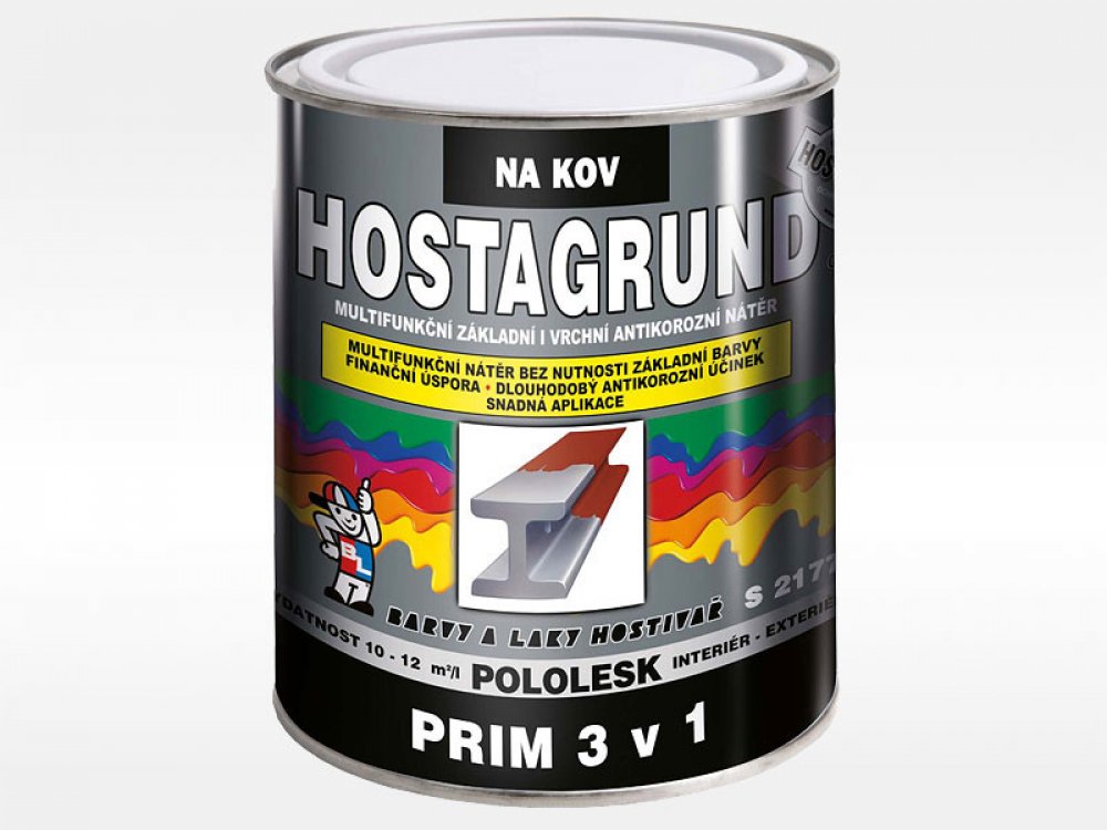 Hostagrund Prim 3v1 S 2177 se nanáší na předem připravený podklad. Před použitím se barva podle potřeby naředí ředidlem S 6006 a důkladně zamíchá. Aplikuje se ve 2 – 3 vrstvách podle předpokládané náročnosti aplikace. Interval pro nanášení jednotlivých vrstev je minimálně 8 hodin. Doporučená tloušťka jedné vrstvy je 30 – 40 µm. Na ucelené plochy používejte vždy materiál z jedné výrobní šarže. Při užití stejné výrobní šarže je zaručen stejný barevný odstín. Minimální teplota vzduchu pro nanášení je 5°C, teplota natíraného podkladu musí být 3°C nad rosným bodem, přičemž teplota a relativní vlhkost vzduchu musí být měřeny v blízkosti natíraného podkladu. Teplota podkladu nesmí být vyšší než 40°C. Relativní vlhkost vzduchu nesmí být vyšší než 75%. Nižší teplota a vyšší relativní vlhkost při nanášení a zasychání a příliš silná vrstva nanášeného filmu výrazně zpomalují zasychání a protvrdání nátěrového filmu.