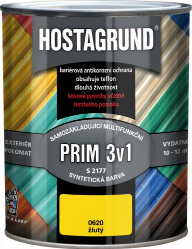 Multifunkční základní i vrchní antikorozní polomatná barva na kov. Jednovrstvá polomatná barva spojující vlastnosti základního antikorozního nátěru, mezivrstvy a současně vrchní barvy. Je určena k přímým nátěrům kovů ve venkovním i vnitřním prostředí. Barva na kov je ideální pro nátěry ocelových materiálů, zoxidovaných a čerstvých pozinkovaných povrchů jako např. střechy, kovové konstrukce, stožáry, ploty, sloupy, vrata apod. Barvu na kov je možné použít i pro nátěr savých podkladů jako např. dřevo a dřevotříska. Barva na kov HOSTAGRUND není určena k nátěrům, které přicházejí do přímého styku s potravinami, krmivy a pitnou vodou a k nátěrům dětského nábytku a hraček. Vlastnosti barvy na kov 3v1 multifunkční barva na kov 3v1 dlouhodobá odolnost povětrnostním vlivům bariérová antikorozní ochrana obsahuje teflon pro vnitřní i venkovní použití dlouhá životnost na kov včetně čerstvého pozinku Použití HOSTAGRUND Prim barvy na kov: Jednovrstvá polomatná barva spojující vlastnosti základního antikorozního nátěru, mezivrstvy a současně vrchní barvy. Je určena k přímým nátěrům rozmanitých kovů, včetně čerstvého pozinku, ve venkovním i vnitřním prostředí. Barva je ideální zejména pro nátěry střech, kovových konstrukcí, stožárů, plotů, sloupů, vrat apod. Barvu je možné použít i pro nátěr savých podkladů jako dřevo nebo minerální povrchy. Barva není určena k nátěrům, které přicházejí do přímého styku s potravinami, krmivy a pitnou vodou a nátěrům dětského nábytku a hraček. Barva smí být používána na plochy přicházející do nepřímého styku s poživatinami, krmivy a pitnou vodou. Technické vlastnosti barvy na kov 3v1: podklad ocel, pozinkované ocelové povrchy, dřevo, dřevotříska, minerální povrchy prostředí interiér a exteriér použití barva na střechy, kovové konstrukce, stožáry, ploty, sloupy, vrata, čerstvý pozink vydatnost barvy na kov 10 až 12 m²/l na jednu vrstvu ředění S 6001 (stříkání), S 6006 (štětec, váleček) zaschlý proti prachu do 1 hodiny proschlý do 24 hodin balení 600 ml odstín 0570 zelená tmavá Příprava podkladu pro barvu na kov 3v1: Podklad pro aplikaci musí být čistý, suchý, zbavený mastnot, volné rzi a prachu, mechanicky očištěný. Nejdříve ze všeho se musí povrch odmastit pomocí vhodného čistícího prostředku (např. technický benzín P 6402, aceton P 6401 nebo kde je to možné teplá tlaková voda s obsahem saponátu). Pro případné odstranění zbytků různých solí je nutné povrch následně opláchnout čistou vodou. Hrubé a dobře přilnavé nečistoty je nutné odstranit ručně nebo mechanicky (broušením, škrábáním). Případnou volnou rez je možné odstranit též ručně nebo mechanicky (kovové kartáče, brusné kotouče). Doporučovaná předúprava povrchu čerstvě pozinkovaných plechů před nátěrem: Připraví se směs 10 l vody, 0,5 l čpavkové vody (25 %ní) a cca 50 ml smáčedla (saponát). Tento roztok se aplikuje na upravovaný plech a po cca 10 min působení se roztírá, např. hadrem z umělého rouna na násadě, až do vytvoření kovově šedé pěny. Následuje dokonalý oplach čistou vodou. Barva se nanáší po dokonalém oschnutí plechu. Savé podklady je nutné nejprve napustit vhodným napouštědlem, které zajišťuje stejnoměrnou savost podkladu. Dříve natřené povrchy je nutné očistit, odmastit a zbavit starých nepřilnavých nátěrů. Pro zajištění kompat