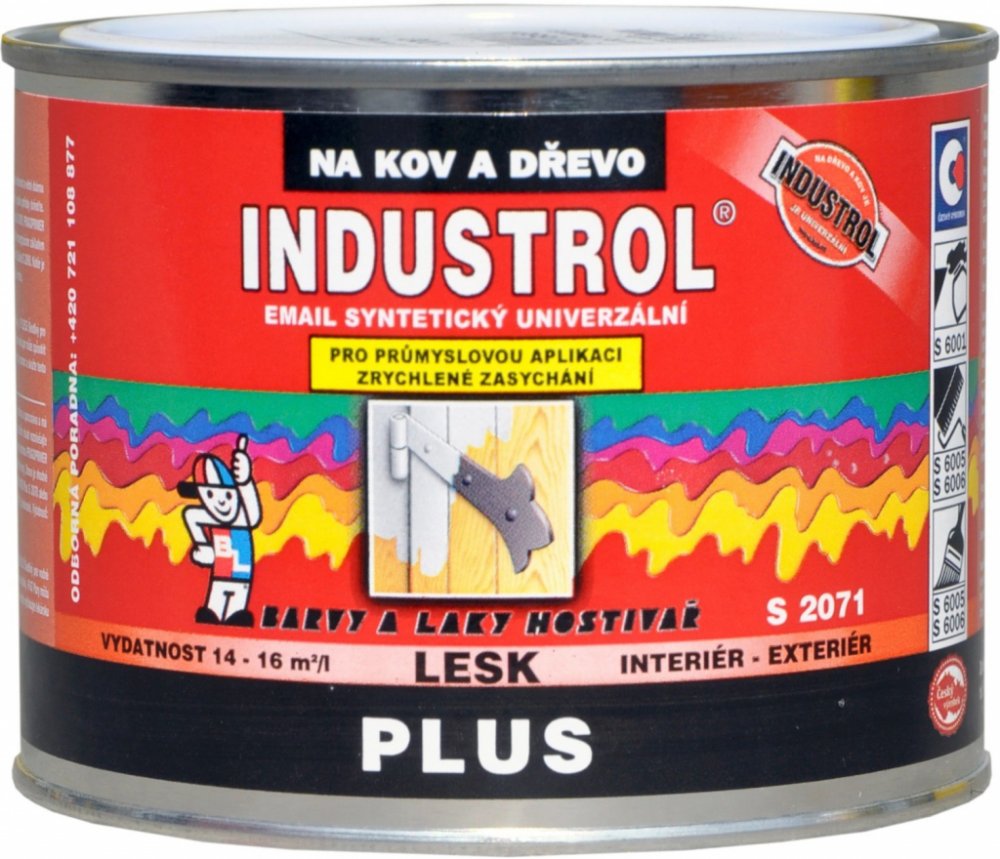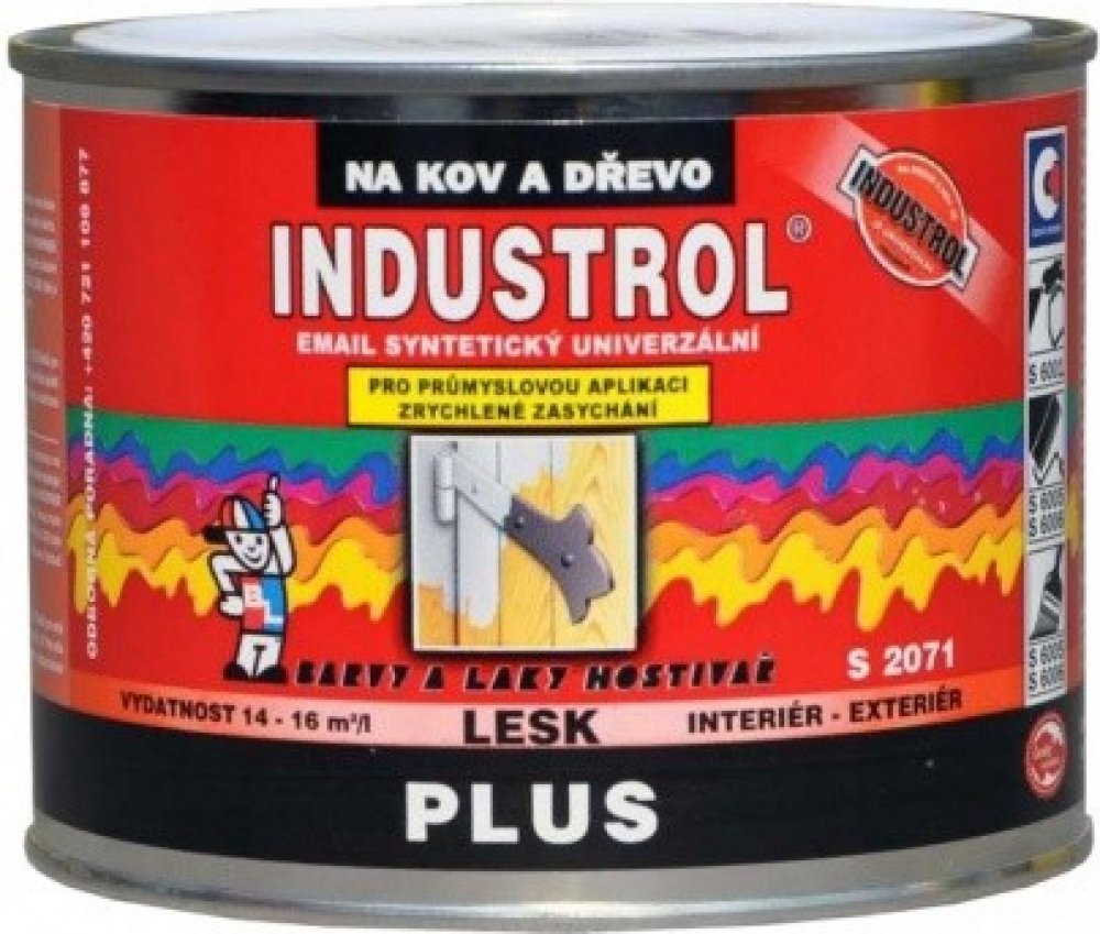 Barvy A Laky Hostivař Industrol Plus S2071 vrchní barva na kov i dřevo interiér a exteriér, 1000 bílá, 375 ml