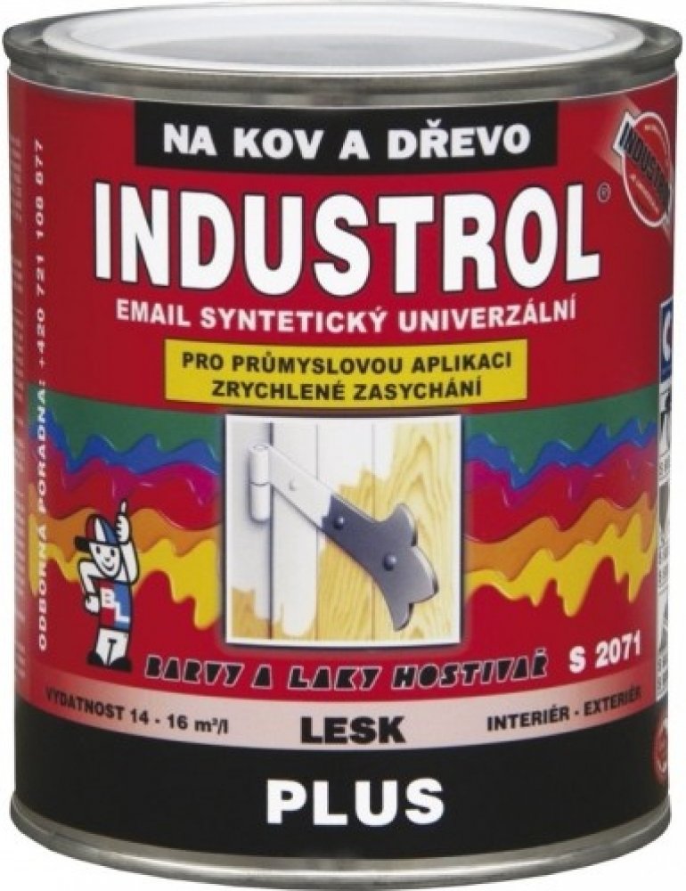 Industrol Plus S2071 vrchní barva na kov i dřevo, 1000 bílá, 750 ml Ke konečným vrchním nátěrům na kov i dřevo vystavených přímým povětrnostním vlivům i pro nátěry v interierech. Nanáší se obvykle v jedné až dvou vrstvách na předem vypracovaný podklad. Optimální tloušťka jedné vrstvy je 30 - 35 um, interval mezi vrstvami 24 h/20 C. Výrobek není určen k nátěrům, které přicházejí do přímého styku s ...