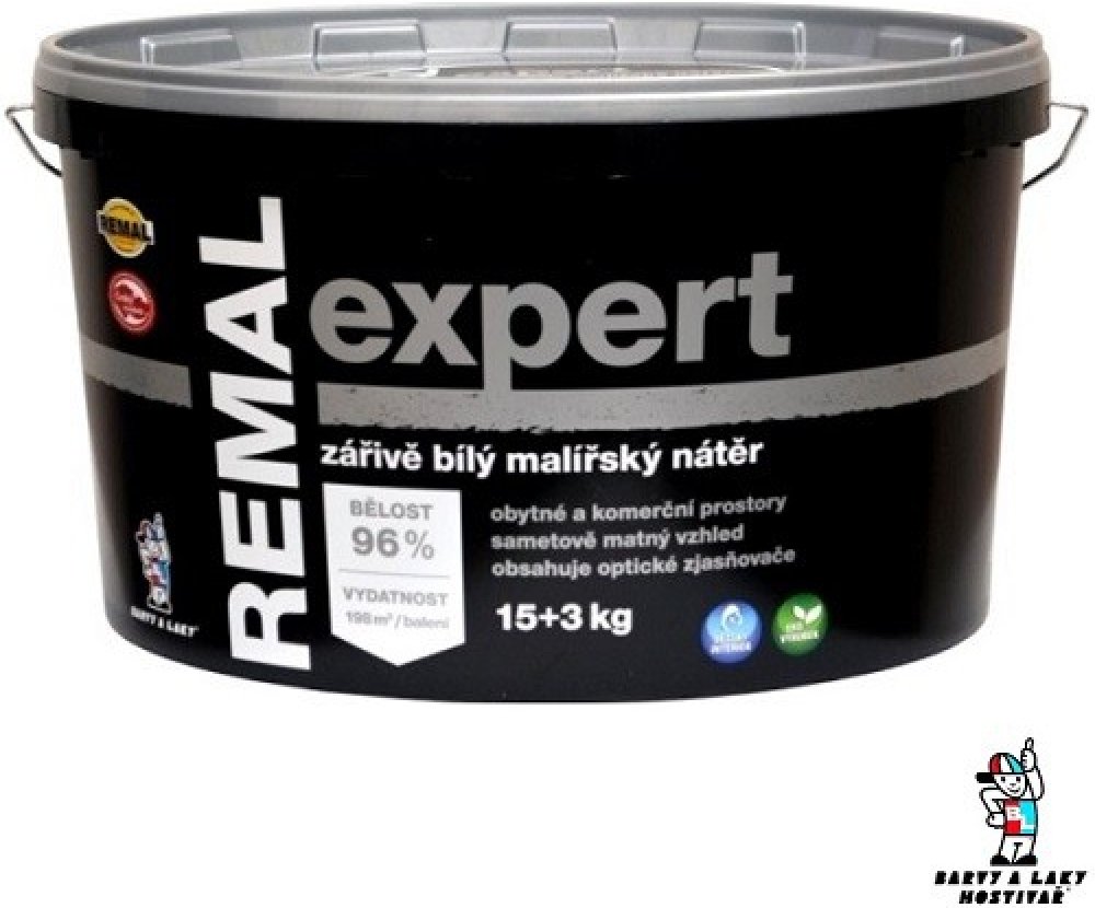 REMAL Expert je sametově matná a zářivě bílá malířská barva s extrémně vysokou bělostí 96 %. Interiérová barva má excelentní krycí schopnost a je zároveň vysoce prodyšná, vhodná i na sanační omítky.