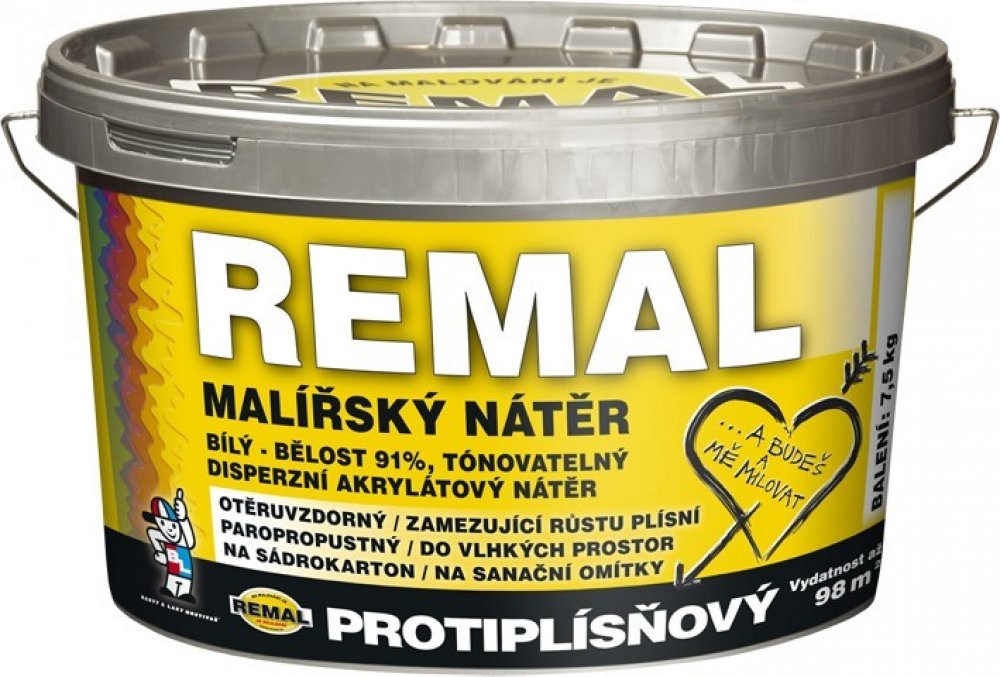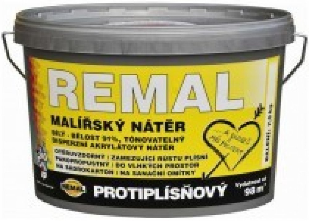 Pracovní postup:Místa napadená plísněmi se za mokra očistí a ošetří sanačním prostředkem REMAL SANAL na zdivo V 1406. Příliš savé, sprašující se nebo nesoudržné podklady je nutno předem napenetrovat (zpevnit) vhodnou penetrací např. REMAL PENETRAČNÍ NÁTĚR, BARLET UNIVERZÁLNÍ PENETRACE nebo BARLET HLOUBKOVÁ PENETRACE resp. SOICRAT PENETRACE. Doporučené ředění: pro první vrstvu přimíchejte na 1 kg barvy max. 0,4 l (40%) vody, pro další vrstvy přimíchejte na 1kg barvy max. 0,3l (30%) vody. Další vrstvy nanášejte nejdříve po dokonalém zaschnutí. Na vyrovnání nerovných ploch použijeme REMAL stěrku. V trhlinách větších rozměrů je třeba odstranit nesoudržný materiál a pro jejich vyplnění použít akrylátový tmel, po jeho zaschnutí použijeme na vyrovnání REMAL stěrku. Po zaschnutí a přebroušení je podklad snáze přetíratelný malířskou barvou. Na problematická místa (proteklé fleky apod.) je vhodné použít izolační nátěr REMAL FLEK-STOP. Teplota podkladu a prostředí nesmí při aplikaci klesnout pod + 5 °C.