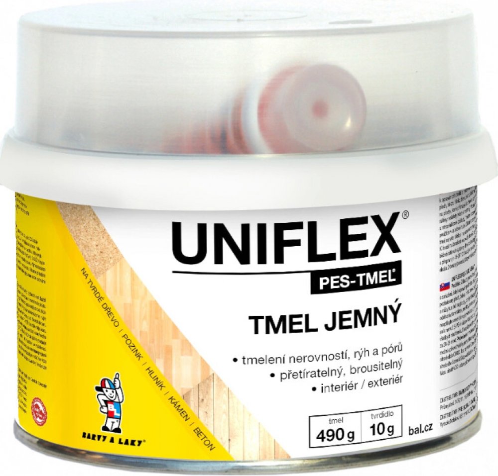 Dvousložkový univerzální polyesterový tmel na dřevo, kov, beton je určený na tmelení středních a větších nerovností. Vynikající přilnavost na většině povrchů, především na kov, ocel, kámen, beton, dřevo atd. Vhodný pro opravy poškozených podkladů. Vysoká plnící schopnost. Lehká zpracovatelnost a broušení. Přetíratelný. Pro vnitřní i venkovní použití. Tmel se nesmí používat na tmelení míst, která přicházejí do přímého styku s potravinami a pitnou vodou.