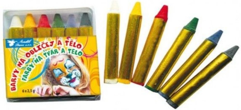 Barvy na obličej a tělo 6 ks perleťové v sáčku 6 x 7 cm karneval