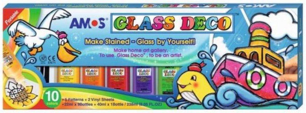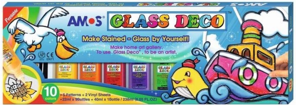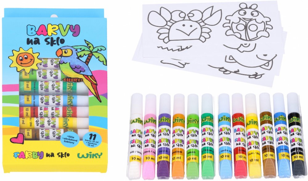 Sada barviček na sklo 9 barev 22ml+ 1 černá kontura 40ml+šablony, fólie