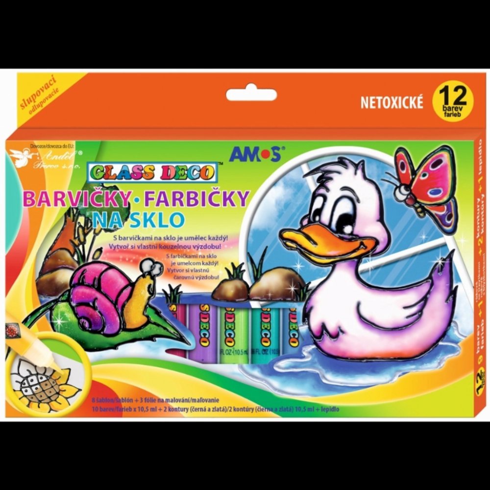 Barvy na sklo sada 12 barev 10,5 ml + šablony a fólie
