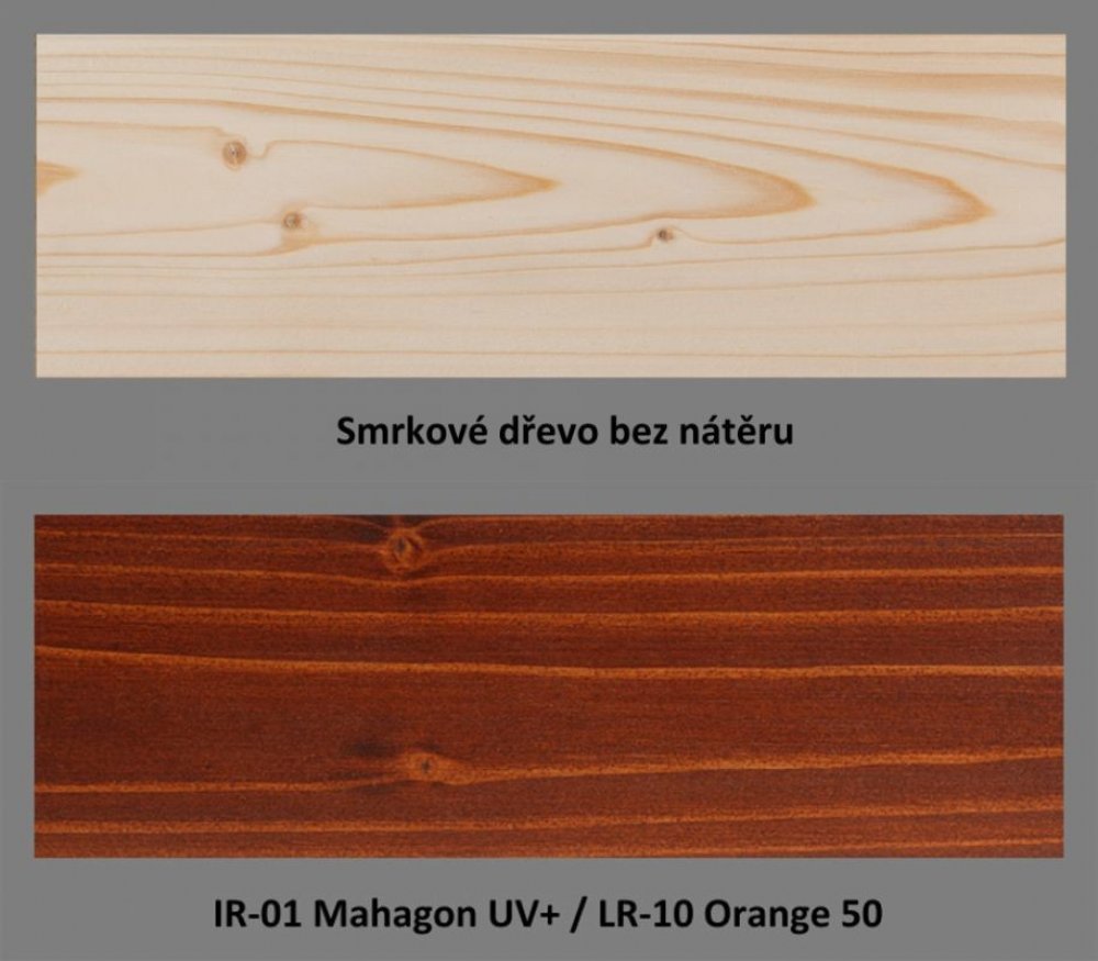 upraveno html4output Impregnační nátěr na dřevo, vyrobený z rostlinných olejů a alkydových jednokomponentních pryskyřic pro preventivní ochranu dřeva v exteriéru. CHARAKTERISTIKA: doporučen jako venkovní ochrana a impregnace holých dřevěných povrchů před aplikací vrchního nátěru PLUS UV penetrační lazura LR-10 velmi dobré penetrační vlastnosti, proniká hluboko do dřeva, zmírňuje negativní vlivy vlhkosti (praskání, šednutí) a mikrobiologického růstu. přírodní oleje, které jsou zásadní složkou tohoto přípravku umožňují zvýraznění přirozené struktury dřeva, přípravek vytváří vodoodpudivý povrch, prodlužuje životnost dřevěného výrobku nejčastěji se používá v barevných variantách. Použité mikropigmenty jsou důležitou součástí UV-ochrany nátěrového filmu. Z dekorativního hlediska vytvářejí ve spolupráci s přírodními oleji velmi působivé prokreslení textury dřeva PŘÍKLADY POUŽITÍ: Určen hlavně pro použití v exteriéru pro základní ošetření a údržbu srubů, roubených staveb, dřevěných plotů, zahradního nábytku, dřevěných obkladů, oken, dveří a dalších stavebně - technických výrobků ze dřeva. ODSTÍNY: Dodáváme nejčastěji v tónovaném provedení, tedy v barevných podkladových odstínech pod vrchní lazuru LR-10 (která je rovněž tónována), viz. přiložený vzorník výše. Výjimečně se používá v transparentním (bezbarvém) provedení - viz na konci oddílu. Vzorník prezentuje hotový nátěrový systém. Systém se skládá z 1 vrstvy nátěru impregnačního oleje IR-01 ve vybraném odstínu 2 vrstev nátěru vrchní lazury LR-10 v odpovídajícím barevném provedení pro vybraný základní odstín impregnačního oleje. Zatímco impregnační olej vybíráte ze 23 možností, vrchní lazura je dodávána ve 3 základních odstínech. Výsledný barevný vjem je kombinací základního nátěru (IR-01) a vrchní lazury (LR-10). Ve vzorníku je pod každým obrázkem definována použitá barevná kombinace. Bezbarvý přípravek se používá pouze ve 2 případech: Příklad 1: Máte starší, dříve natíraný povrch, který je vcelku soudržný, ale potřebuje revitalizovat. Lokálně je poškozen a tudíž místy starý nátěr chybí (je obnaženo dřevo). Řešením je sjednotit savost starého povrchu nátěrem bezbarvého IR-01 a nechat dobře proschnout (alespoň 24 hodin). Následně doporučujeme provedení 2 nátěrů vrchní lazurou LR-10 ve správně zvoleném revitalizačním odstínu (např. REV Borovice, REV Palisandr...atd.) Příklad 2: Máte v zásobě tenkovrstvou vrchní lazuru od jiného výrobce. Jste na odstín zvyklí a máte v úmyslu vytvořit nějaký nový objekt (domek na nářadí), který chcete mít ve stejném odstínu, jaký jste použili i na svůj dům. PLUS impregnační olej IR-01 v bezbarvém provedení Vám může posloužit, jako základní penetrační bezbarvý nátěr na holé dřevo. Následně aplikujete tónovanou syntetickou lazuru, kterou již máte připravenu z minulosti. BALENÍ: Transparentní báze určená k barevnému tónování dle Vašeho výběru.Obal 10L (plnění 9L + pigment) VYDATNOST: opracované dřevo 9–12 m²/litr na 1 nátěr,neopracované dřevo 4–5 m²/litr na 1 nátěr. CENA: Dle odstínu. Orientačně pro 1 vrstvu nátěru nových broušených smrkových palubek lze počítat s materiálovými náklady ve výši 24-30 Kč bez DPH /m², průměrně 27 Kč/m²bez DPH (z největšího balení).V systému s vrchní UV-lazurou LR-10, tj. 1 x nátěr IR-01 + 2 x nátěr LR-10 lze průměrně počítat s materiálovými náklady na celý nátěrový systém (3 vrstvy) ve výši cca 62 Kč/m²bez DPH (z největšího balení). Pro velikost spotřeby napouštěcího nátěru IR-01 má vliv: typ dřeva (smrk, borovice, modřín, dub) - rozdílná savost vlhkost dřeva (čím sušší, tím víc nasákavé) - vlhkost dřeva by neměla být vyšší, než 20% drsnost povrchu (pouze hoblované saje málo, hoblované a následně broušené saje více) Broušené dřevo (doporučujeme použít brusivo zrnitosti P80) je předpokladem pro kvalitnější a dlouhodobější ochranu, než dřevo, které bylo pouze hoblováno. Pro konkrétní představu dle vašeho výběru odstínu si můžete udělat svůj propočet. Vzorový výpočet spotřeby nátěrových hmot je uveden ve vedlejší záložce u tohoto produktu. V případě jakýchkoli nejasností, kupř. při odhadu spotřeby nátěrových hmot, jsme Vám připraveni ke konzultaci - viz sekce KONTAKTY Referenční foto naleznete ve fotogalerii. TECHNICKÝ LIST