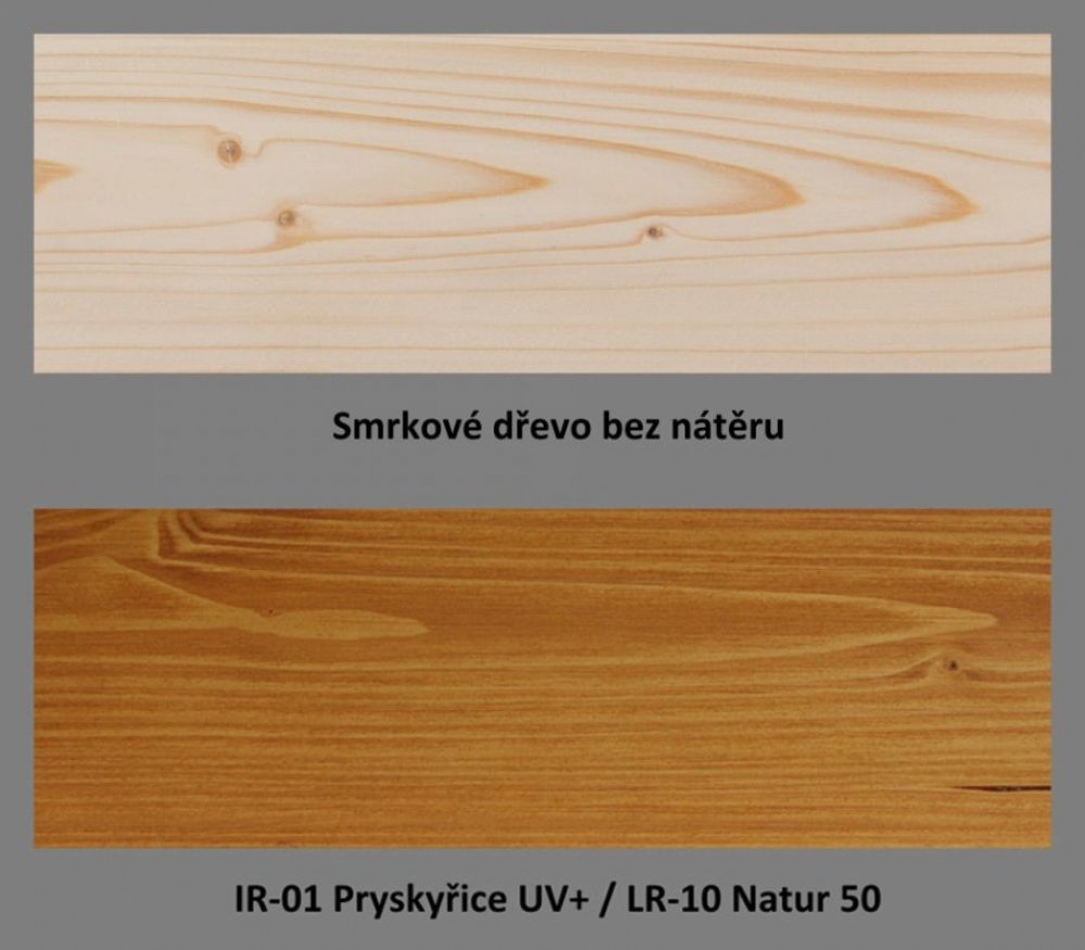 upraveno html4output Impregnační nátěr na dřevo, vyrobený z rostlinných olejů a alkydových jednokomponentních pryskyřic pro preventivní ochranu dřeva v exteriéru. CHARAKTERISTIKA: doporučen jako venkovní ochrana a impregnace holých dřevěných povrchů před aplikací vrchního nátěru PLUS UV penetrační lazura LR-10 velmi dobré penetrační vlastnosti, proniká hluboko do dřeva, zmírňuje negativní vlivy vlhkosti (praskání, šednutí) a mikrobiologického růstu. přírodní oleje, které jsou zásadní složkou tohoto přípravku umožňují zvýraznění přirozené struktury dřeva, přípravek vytváří vodoodpudivý povrch, prodlužuje životnost dřevěného výrobku nejčastěji se používá v barevných variantách. Použité mikropigmenty jsou důležitou součástí UV-ochrany nátěrového filmu. Z dekorativního hlediska vytvářejí ve spolupráci s přírodními oleji velmi působivé prokreslení textury dřeva PŘÍKLADY POUŽITÍ: Určen hlavně pro použití v exteriéru pro základní ošetření a údržbu srubů, roubených staveb, dřevěných plotů, zahradního nábytku, dřevěných obkladů, oken, dveří a dalších stavebně - technických výrobků ze dřeva. ODSTÍNY: Dodáváme nejčastěji v tónovaném provedení, tedy v barevných podkladových odstínech pod vrchní lazuru LR-10 (která je rovněž tónována), viz. přiložený vzorník výše. Výjimečně se používá v transparentním (bezbarvém) provedení - viz na konci oddílu. Vzorník prezentuje hotový nátěrový systém. Systém se skládá z 1 vrstvy nátěru impregnačního oleje IR-01 ve vybraném odstínu 2 vrstev nátěru vrchní lazury LR-10 v odpovídajícím barevném provedení pro vybraný základní odstín impregnačního oleje. Zatímco impregnační olej vybíráte ze 23 možností, vrchní lazura je dodávána ve 3 základních odstínech. Výsledný barevný vjem je kombinací základního nátěru (IR-01) a vrchní lazury (LR-10). Ve vzorníku je pod každým obrázkem definována použitá barevná kombinace. Bezbarvý přípravek se používá pouze ve 2 případech: Příklad 1: Máte starší, dříve natíraný povrch, který je vcelku soudržný, ale potřebuje revitalizovat. Lokálně je poškozen a tudíž místy starý nátěr chybí (je obnaženo dřevo). Řešením je sjednotit savost starého povrchu nátěrem bezbarvého IR-01 a nechat dobře proschnout (alespoň 24 hodin). Následně doporučujeme provedení 2 nátěrů vrchní lazurou LR-10 ve správně zvoleném revitalizačním odstínu (např. REV Borovice, REV Palisandr...atd.) Příklad 2: Máte v zásobě tenkovrstvou vrchní lazuru od jiného výrobce. Jste na odstín zvyklí a máte v úmyslu vytvořit nějaký nový objekt (domek na nářadí), který chcete mít ve stejném odstínu, jaký jste použili i na svůj dům. PLUS impregnační olej IR-01 v bezbarvém provedení Vám může posloužit, jako základní penetrační bezbarvý nátěr na holé dřevo. Následně aplikujete tónovanou syntetickou lazuru, kterou již máte připravenu z minulosti. BALENÍ: Transparentní báze určená k barevnému tónování dle Vašeho výběru.Obal 10L (plnění 9L + pigment) VYDATNOST: opracované dřevo 9–12 m²/litr na 1 nátěr,neopracované dřevo 4–5 m²/litr na 1 nátěr. CENA: Dle odstínu. Orientačně pro 1 vrstvu nátěru nových broušených smrkových palubek lze počítat s materiálovými náklady ve výši 24-30 Kč bez DPH /m², průměrně 27 Kč/m²bez DPH (z největšího balení).V systému s vrchní UV-lazurou LR-10, tj. 1 x nátěr IR-01 + 2 x nátěr LR-10 lze průměrně počítat s materiálovými náklady na celý nátěrový systém (3 vrstvy) ve výši cca 62 Kč/m²bez DPH (z největšího balení). Pro velikost spotřeby napouštěcího nátěru IR-01 má vliv: typ dřeva (smrk, borovice, modřín, dub) - rozdílná savost vlhkost dřeva (čím sušší, tím víc nasákavé) - vlhkost dřeva by neměla být vyšší, než 20% drsnost povrchu (pouze hoblované saje málo, hoblované a následně broušené saje více) Broušené dřevo (doporučujeme použít brusivo zrnitosti P80) je předpokladem pro kvalitnější a dlouhodobější ochranu, než dřevo, které bylo pouze hoblováno. Pro konkrétní představu dle vašeho výběru odstínu si můžete udělat svůj propočet. Vzorový výpočet spotřeby nátěrových hmot je uveden ve vedlejší záložce u tohoto produktu. V případě jakýchkoli nejasností, kupř. při odhadu spotřeby nátěrových hmot, jsme Vám připraveni ke konzultaci - viz sekce KONTAKTY Referenční foto naleznete ve fotogalerii. TECHNICKÝ LIST