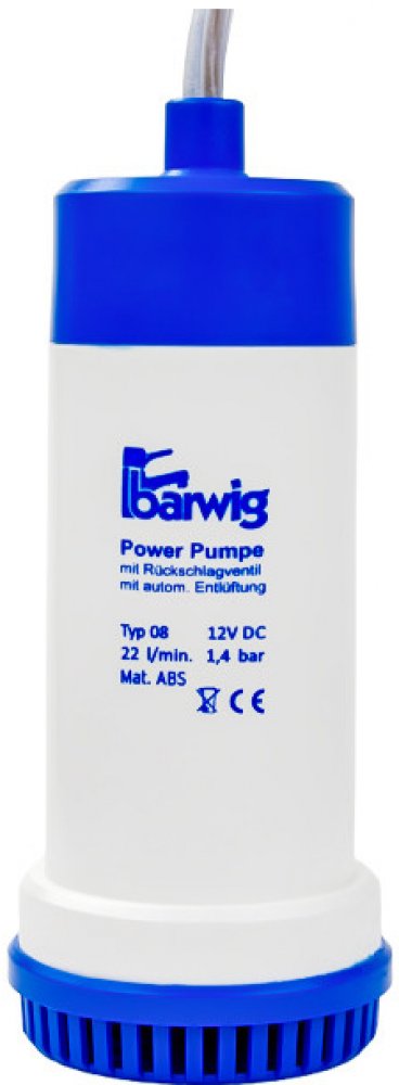 * Výkonné ponorné čerpadlo vhodné pro mobilní použití. Napájení z vhodného síťového zdroje (6-12 V), autobaterie nebo ze solárního modulu. Při napájení 12 VDC je možný max. provoz 30 min. Trvalý provoz je možný u Typu BWV 04 (obj.č. 539090) s podmínkou napájení 6 až 9 V a vodního chlazen
