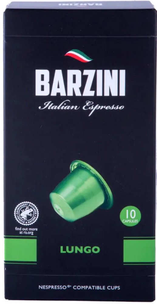 Barzini Lungo – Italská vášeň v každé kapsli Objevte plnou chuť pravého italského Lunga s kapslemi Barzini, kompatibilními s kávovary Nespresso®. Bohaté aroma, sametová crema a intenzivní chuť – ideální pro každý den. Vyrobeno s vášní pro kvalitní kávu.