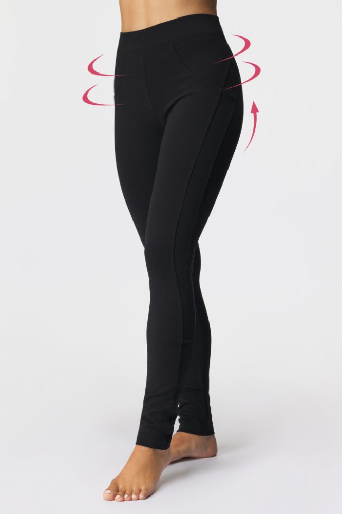 Jejich zdánlivě jednoduchý střih a tmavá barva jen umocňují efekt zeštíhlení. Speciální elastický materiál pevně obepne vaše hýždě a nohy a stáhne je tak, jak je potřeba. Technologie výroby této látky byla oceněna prestižním certifikát...