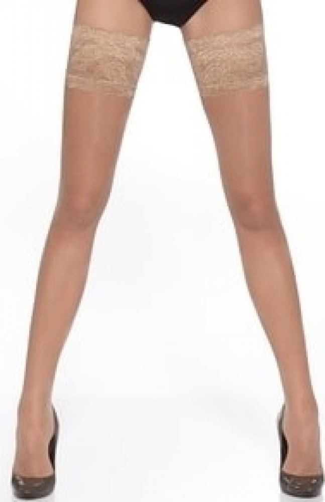 Hladké samodržící punčochy BAS BLEU KAMA 20 DEN v tělové barvě. Punčochy jsou vyrobené z luxusního mikrovlákna s příměsí elastanu pro větší elasticitu a delší trvanlivost. Na horním okraji punčoch je široký krajkový lem se sillikonovými proužky (šířka krajkového lemu 15 cm), díky kterým punčochy dobře drží na místě a nekloužou. Materiál: 86% polyamid, 14% elastan Hladké samodržící punčochy BAS BLE...