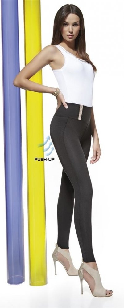 Neotřelé dámské legíny, jejichž základ tvoří černá hladká látka, na níž navazuje z přední části protkaná linie. Originální a moderní provedení. Jejich velká přednost je také luxusní pás z kamenů. Dostanou šanci? Baleno v luxusní dárkové krabičce.