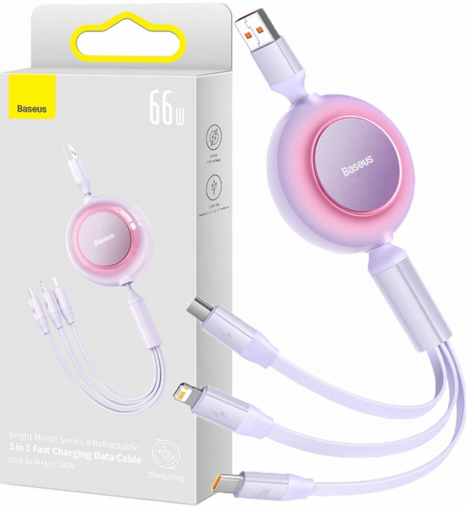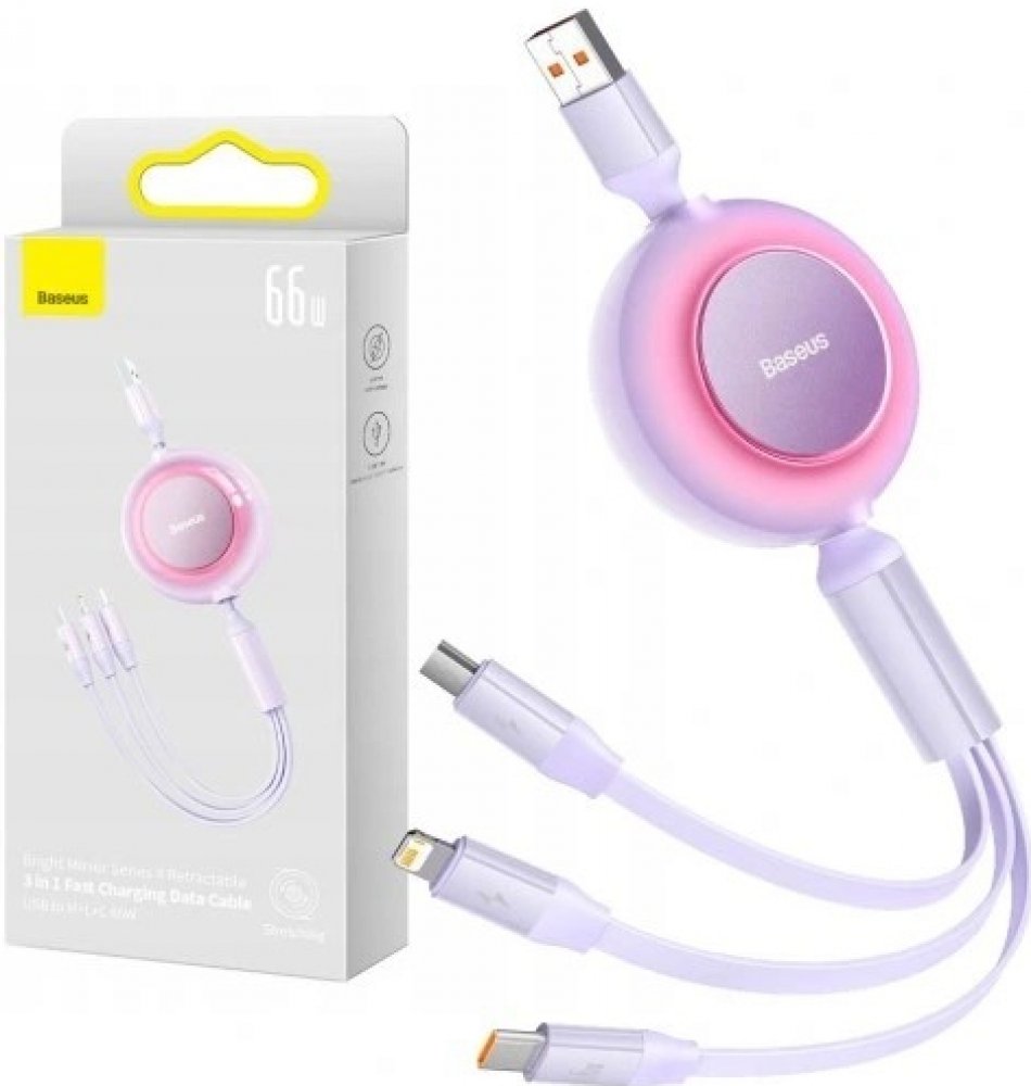 Baseus CAMJ010105 Bright Mirror 2 3v1 USB Typ A - micro USB + Lightning + USB Typ C 66W, 1,1m