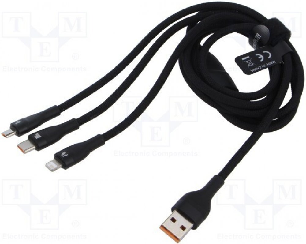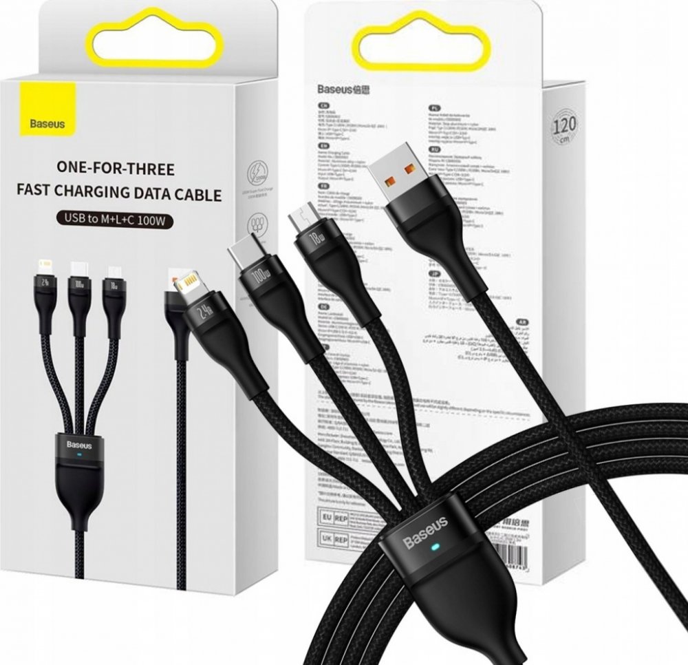 USB kabel Baseus Flash Series II – USB typu C / Lightning / micro USB 100 W 1,2 m černý (CASS030001) Multifunkční nabíjecí USB kabel se 3 zástrčkami by měl být v každé domácnosti!