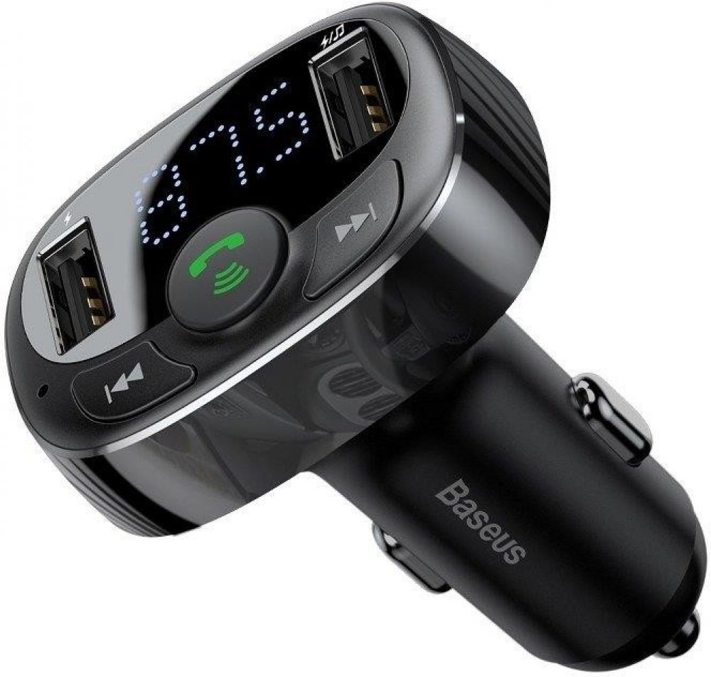 BASEUS FM vysílač T typ Bluetooth 2xUSB microSD, černý