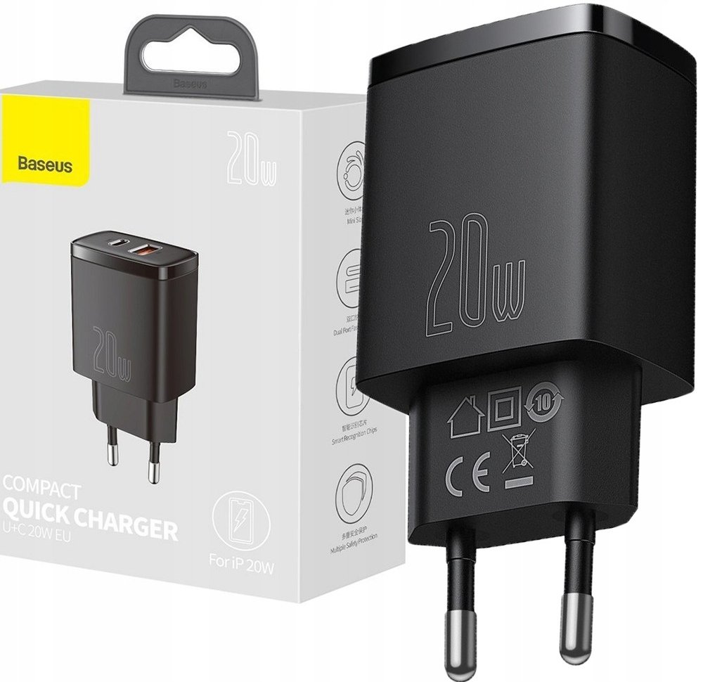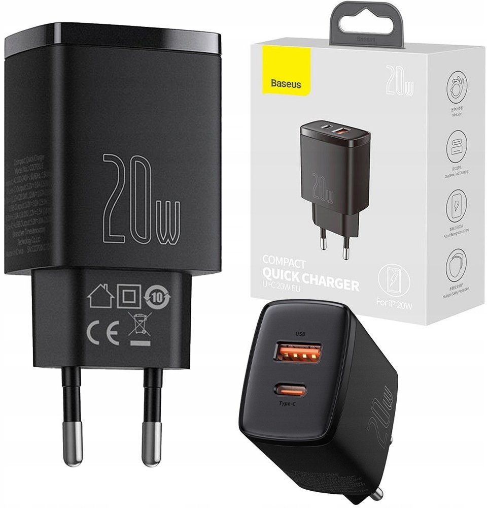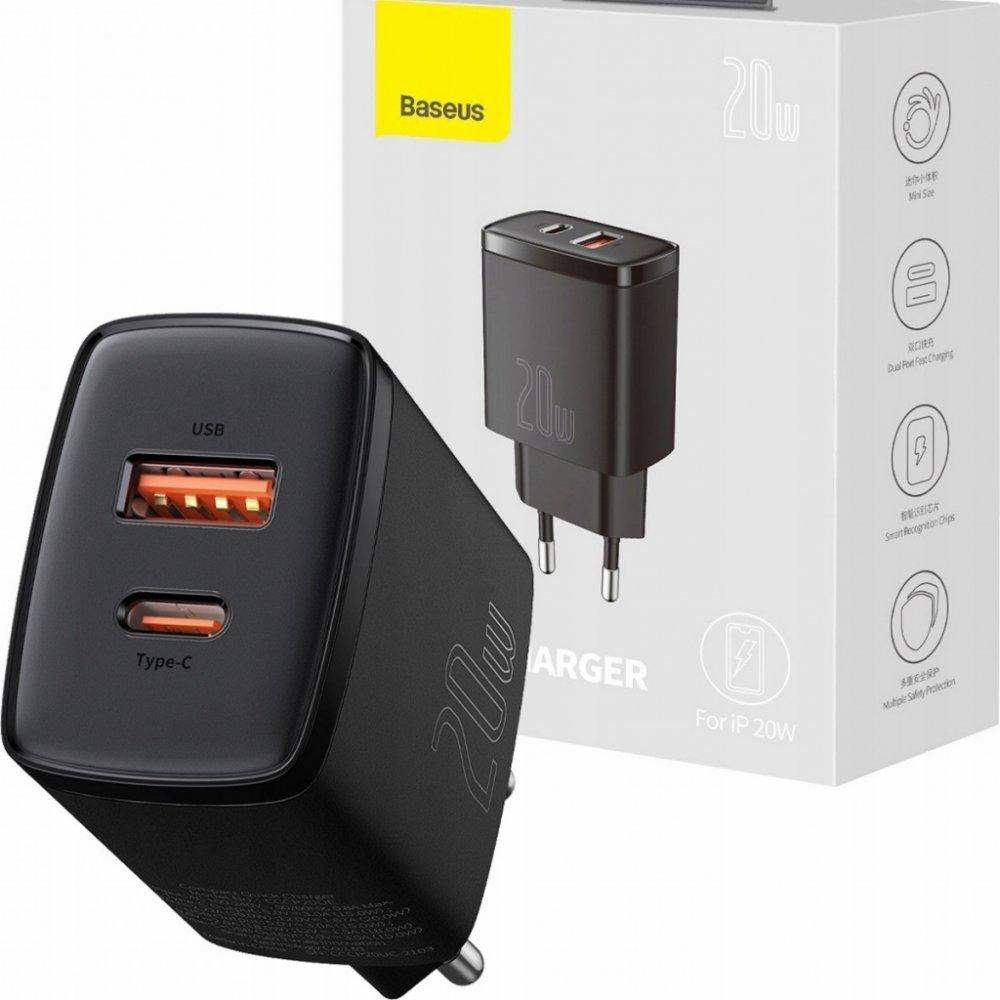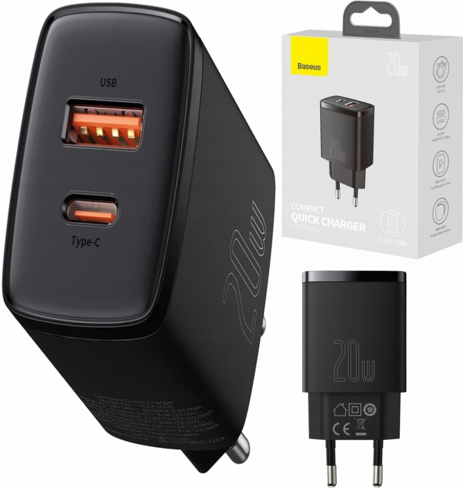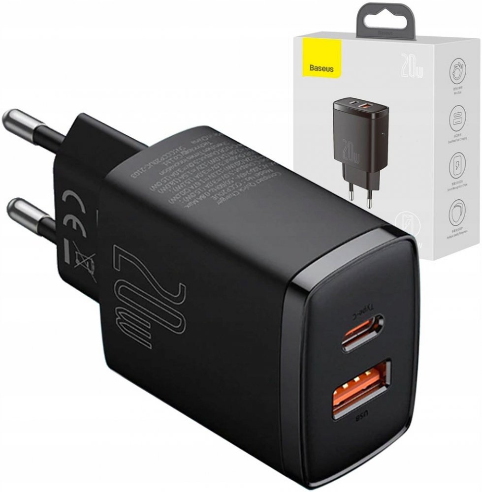 Baseus síťové AC 53 g 82 x 40 x 28 mm kompaktní cestovní 20W, USB-A 5V/3A, USB-C 5V/3A, USB-C 9V/2.22A 20 W 2