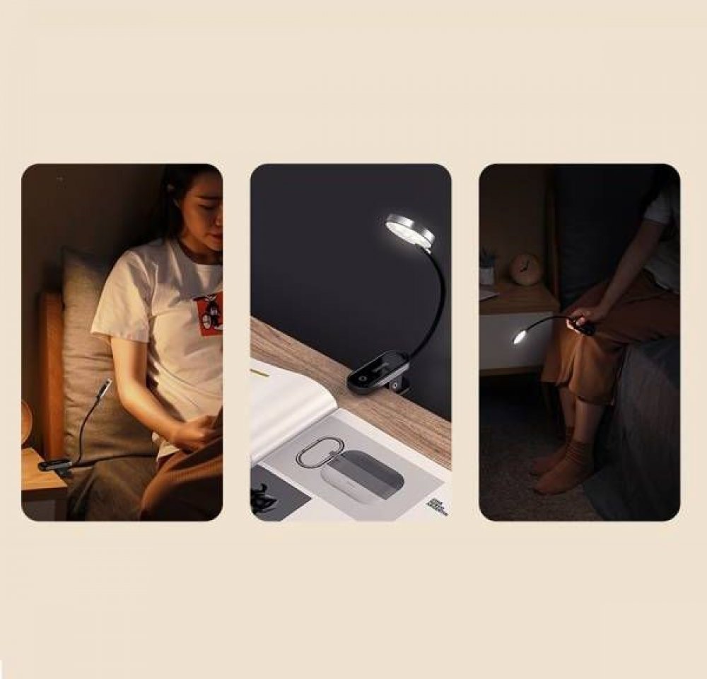 Baseus Comfort Reading stolní lampa s klipem (šedá)