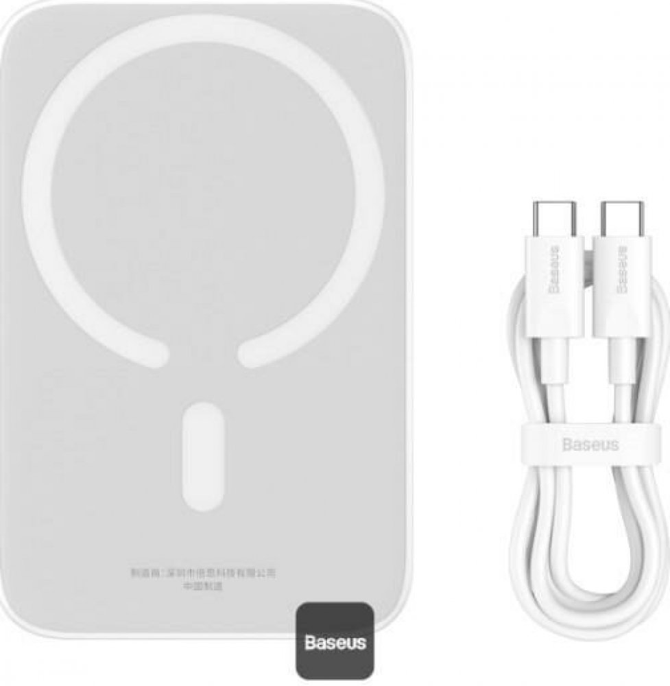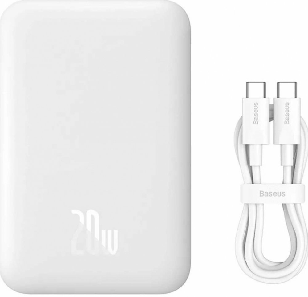 Baseus magnetická bezdrátová MagSafe / Mini Powerbanka 6000 mAh / 20W - bílá.