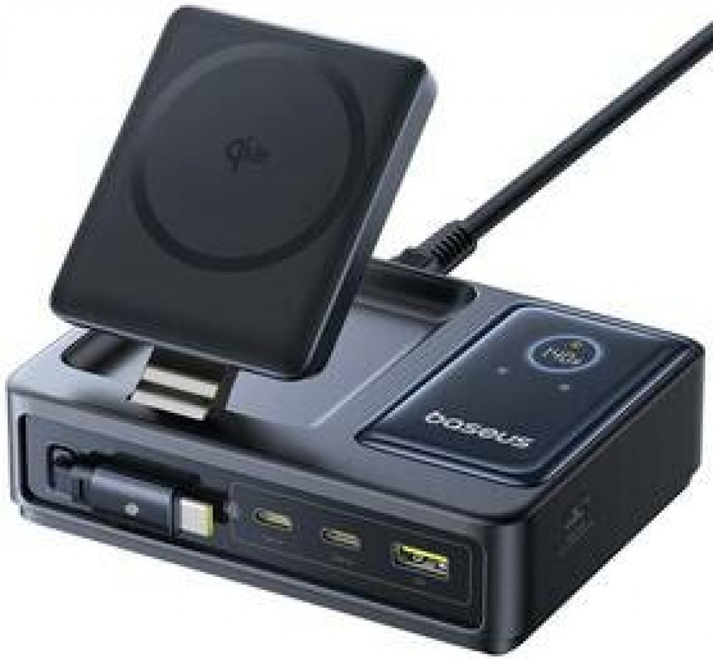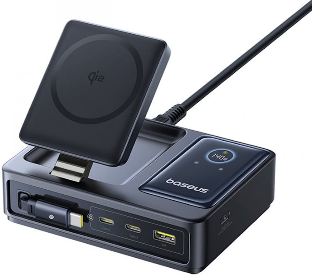 Hlavní funkce:Všestrannost kabelového i bezdrátového připojeníStolní nabíjecí stanice 5v1Bezproblémové nabíjeníOkamžitá zpětná vazba o napájeníNastavitelný stojanSpecifikace: Vhodný pro nabíjení v domácnosti:Vstup: AC 100-240V~, 50/60Hz, 2,5ARozhraní:2× USB-C (samice)1x USB-C (samec) - výsuvný1x USB-A (samice)Bezdrátové připojení Qi2 (5W)Výkon: 140 W (maximálně)