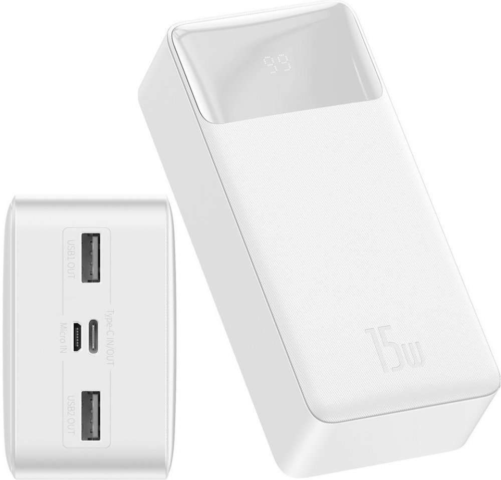 Powerbanka Baseus Bipow 30000mAh, 2xUSB, USB-C, 15W (bílá)