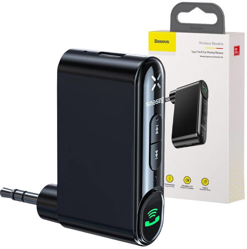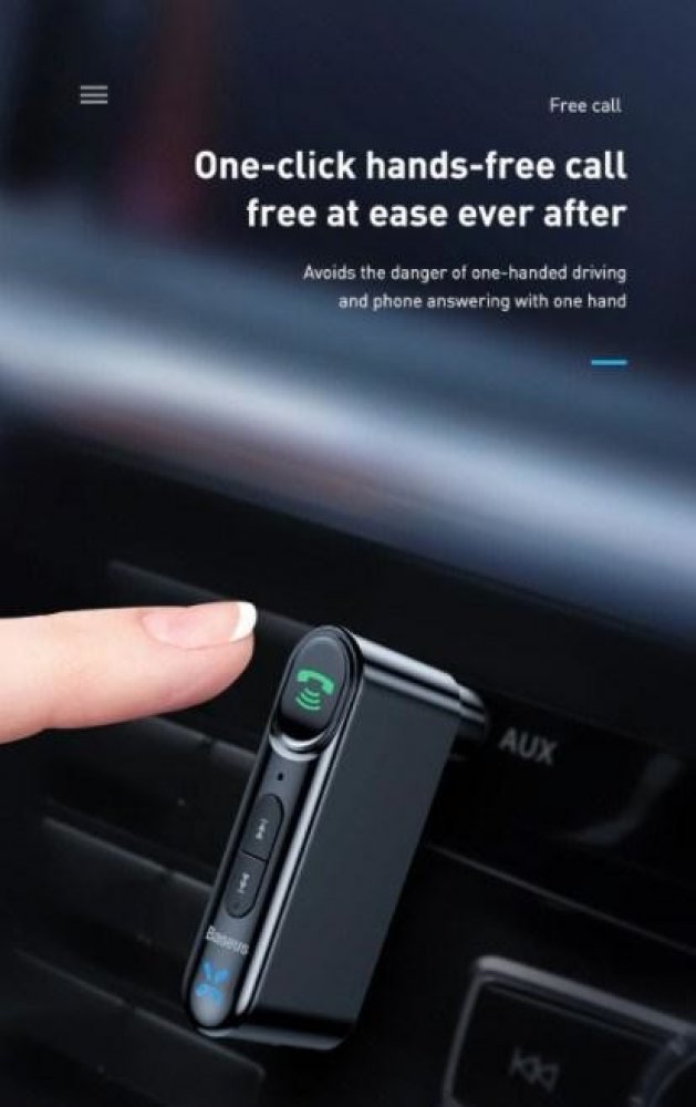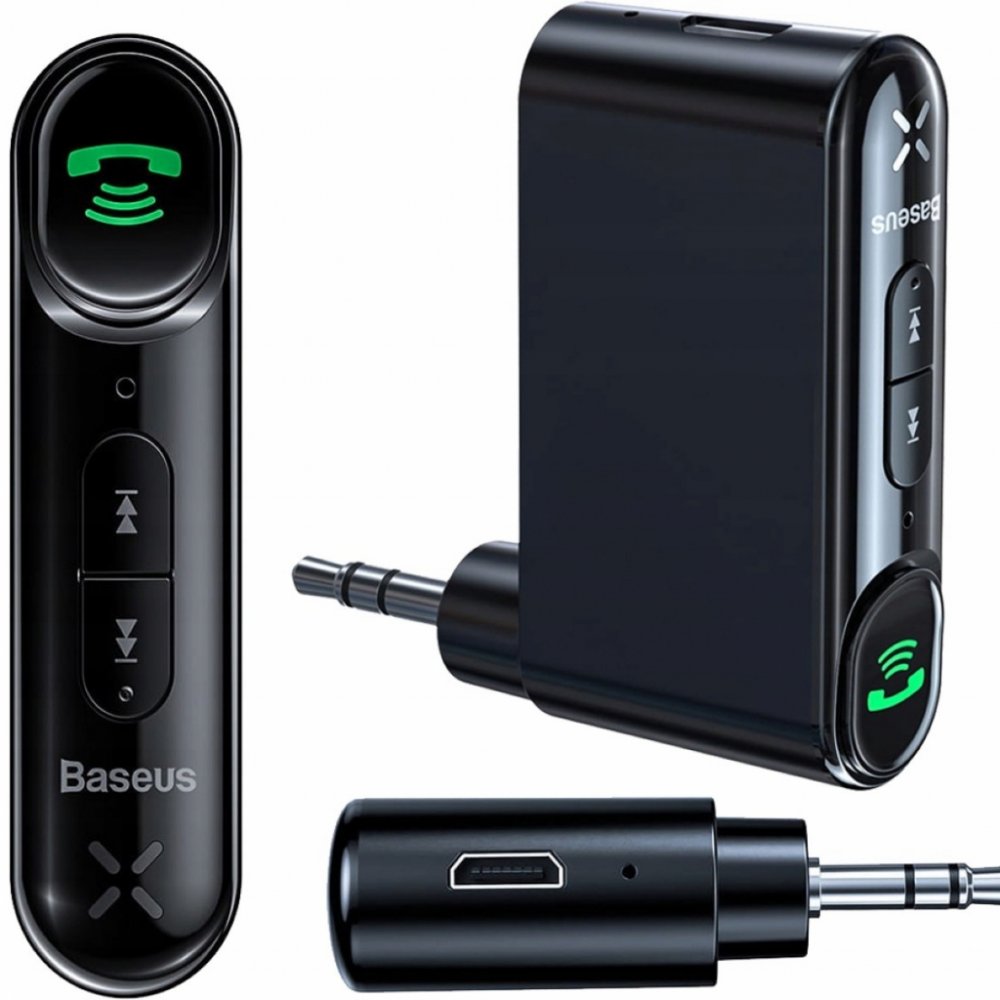 Vysílač Baseus umožňuje propojit telefon například s autorádiem. K tomu používá připojení Bluetooth – AUX. S jeho pomocí lze proměnit drátová zařízení v bezdrátová - díky vestavěné technologii Bluetooth 5.0 a konektoru AUX mini jack 3,5 mm. Vysílač má vestavěný panel pro vyřizování hovorů, možnost změny hlasitosti a vestavěný mikrofon pro telefonování. Díky tomu je tento produkt vysílačem a zároveň hlasitým telefonem.