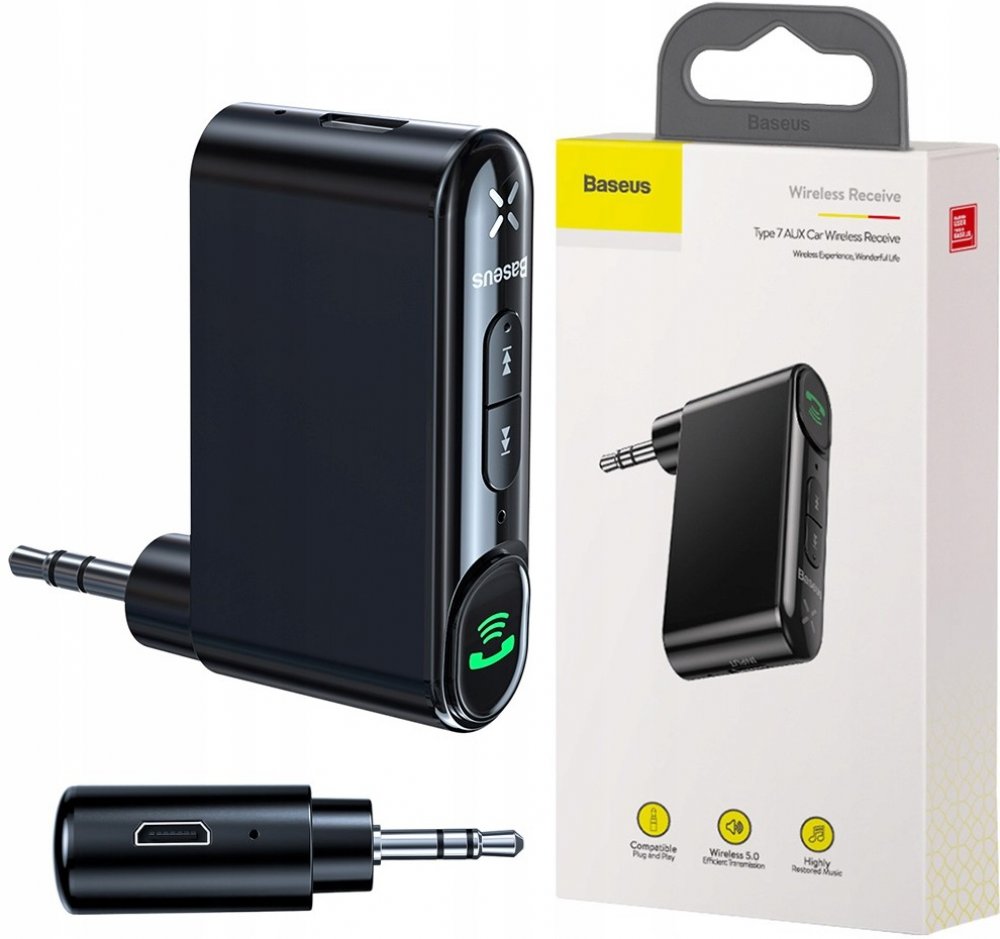 Vysílač Baseus umožňuje propojit telefon například s autorádiem. K tomu používá připojení Bluetooth – AUX. S jeho pomocí lze proměnit drátová zařízení v bezdrátová - díky vestavěné technologii Bluetooth 5.0 a konektoru AUX mini jack 3,5 mm. Vysílač má vestavěný panel pro vyřizování hovorů, možnost změny hlasitosti a vestavěný mikro...