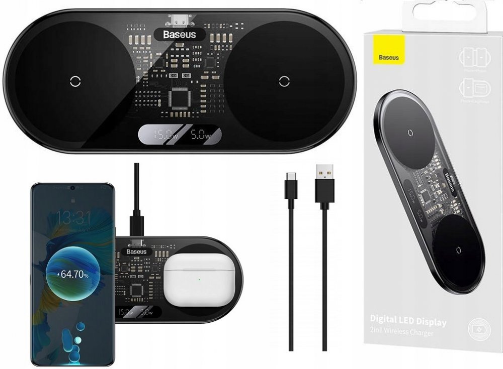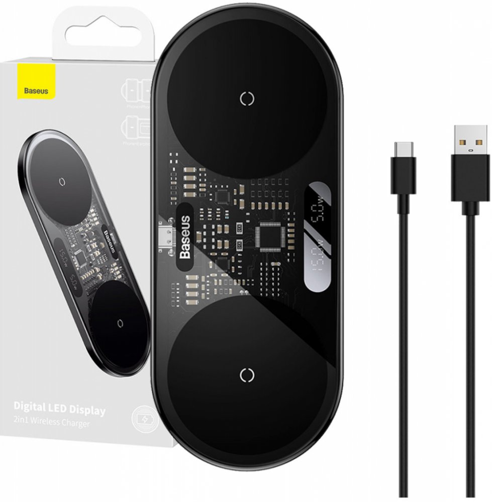 - Model: Digitální LED displej 2v1 Bezdrátová nabíječka 20W černá Univerzální verze Včetně:USB pro typ C 3A 1m černá
