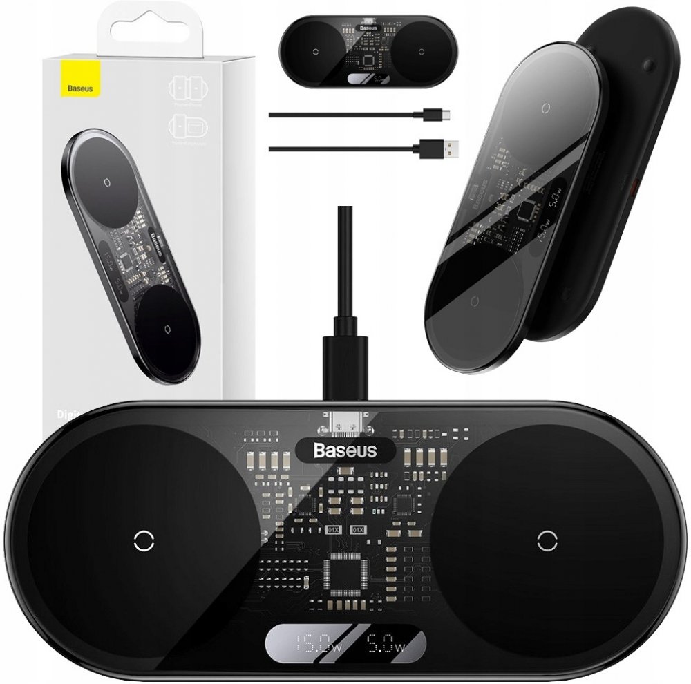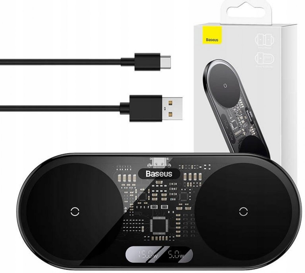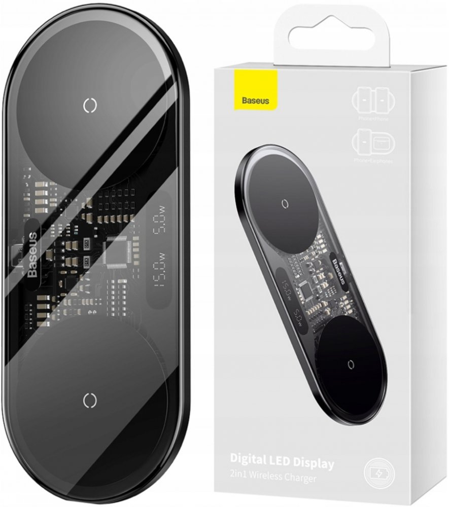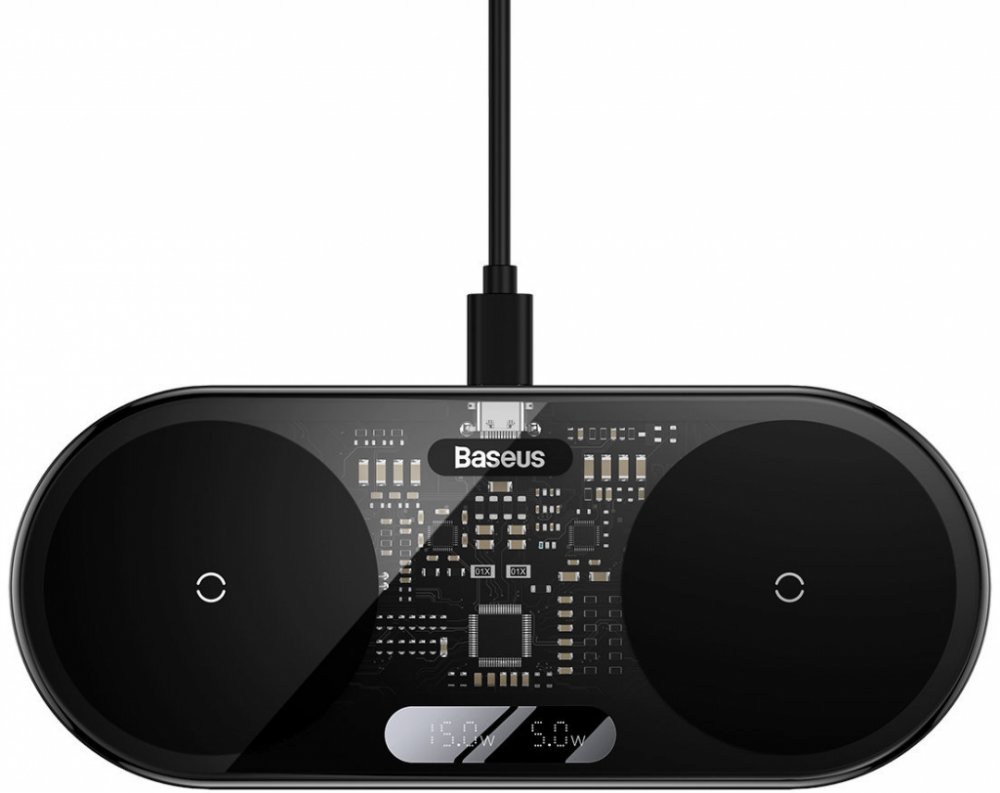 Bezdrátová nabíječka určená k nabíjení dvou zařízení současně. S ním můžete zapomenout na nepohodlné kabely. Podporuje nabíjení s celkovým výkonem 20 W.