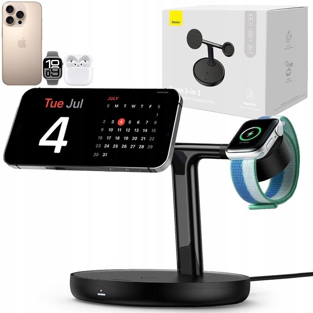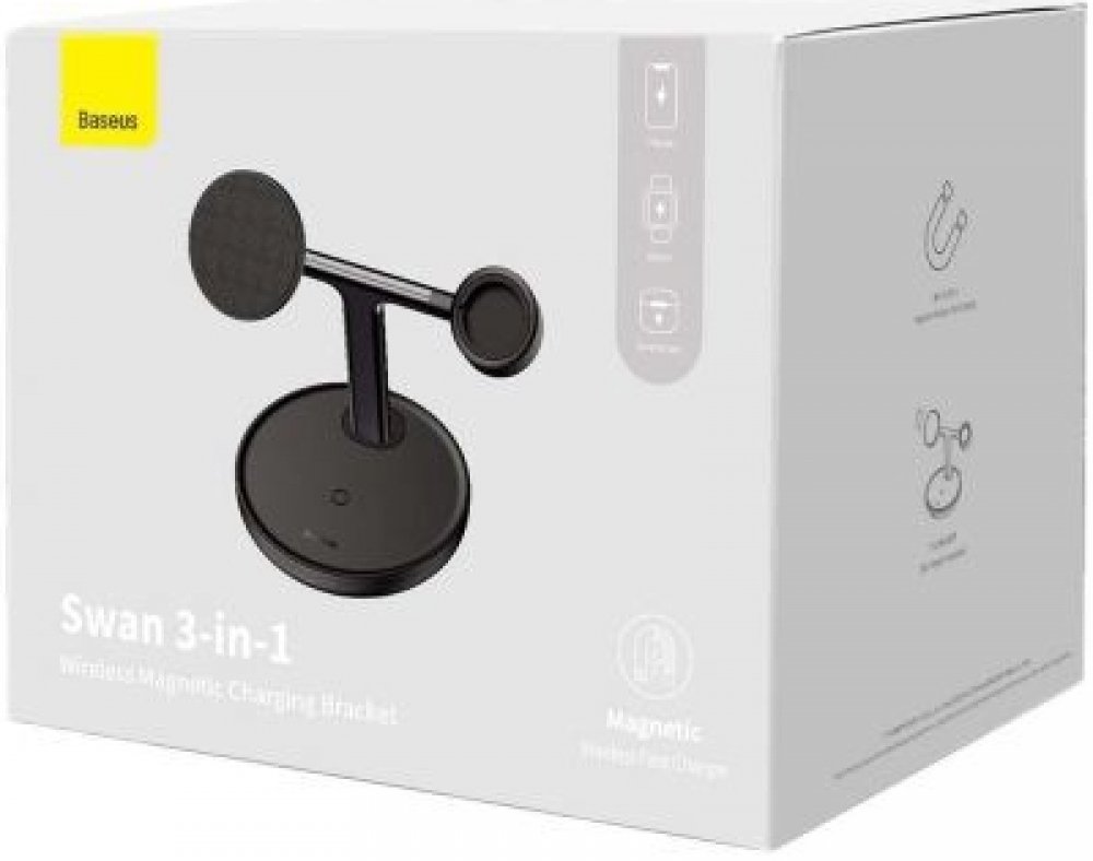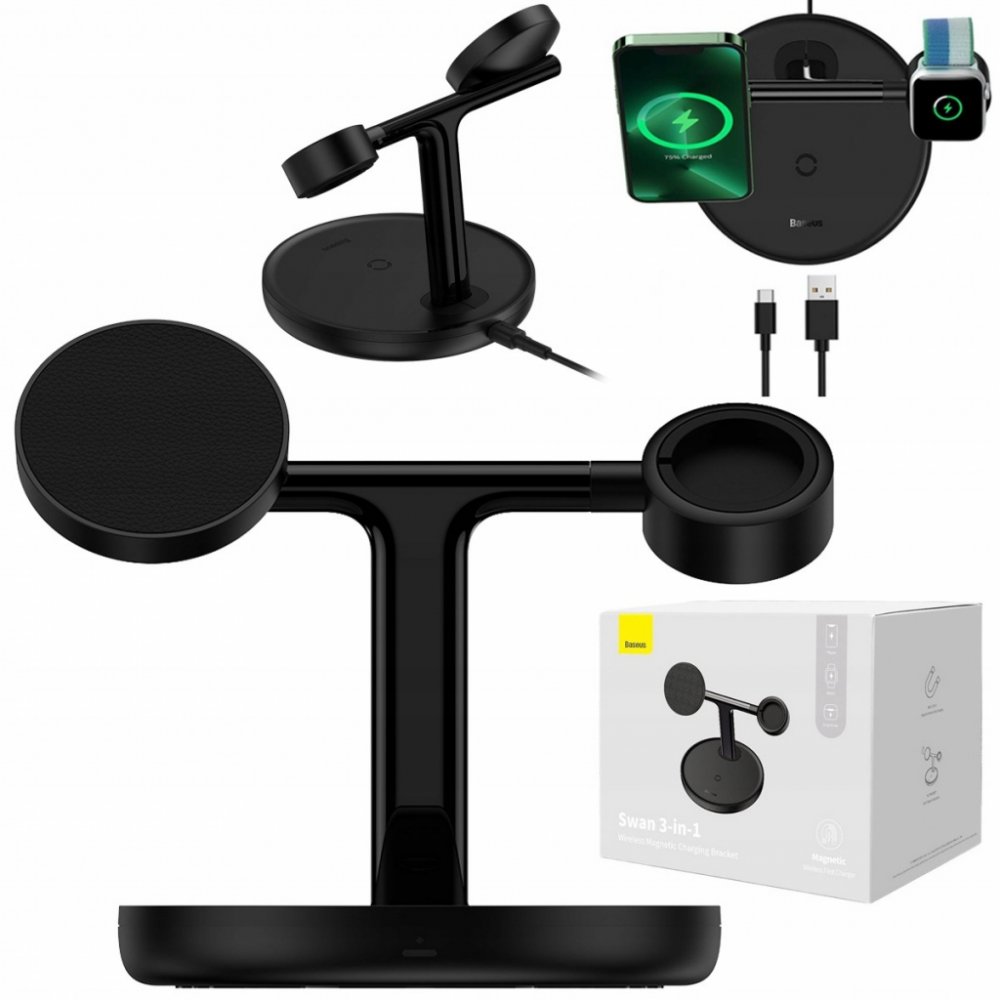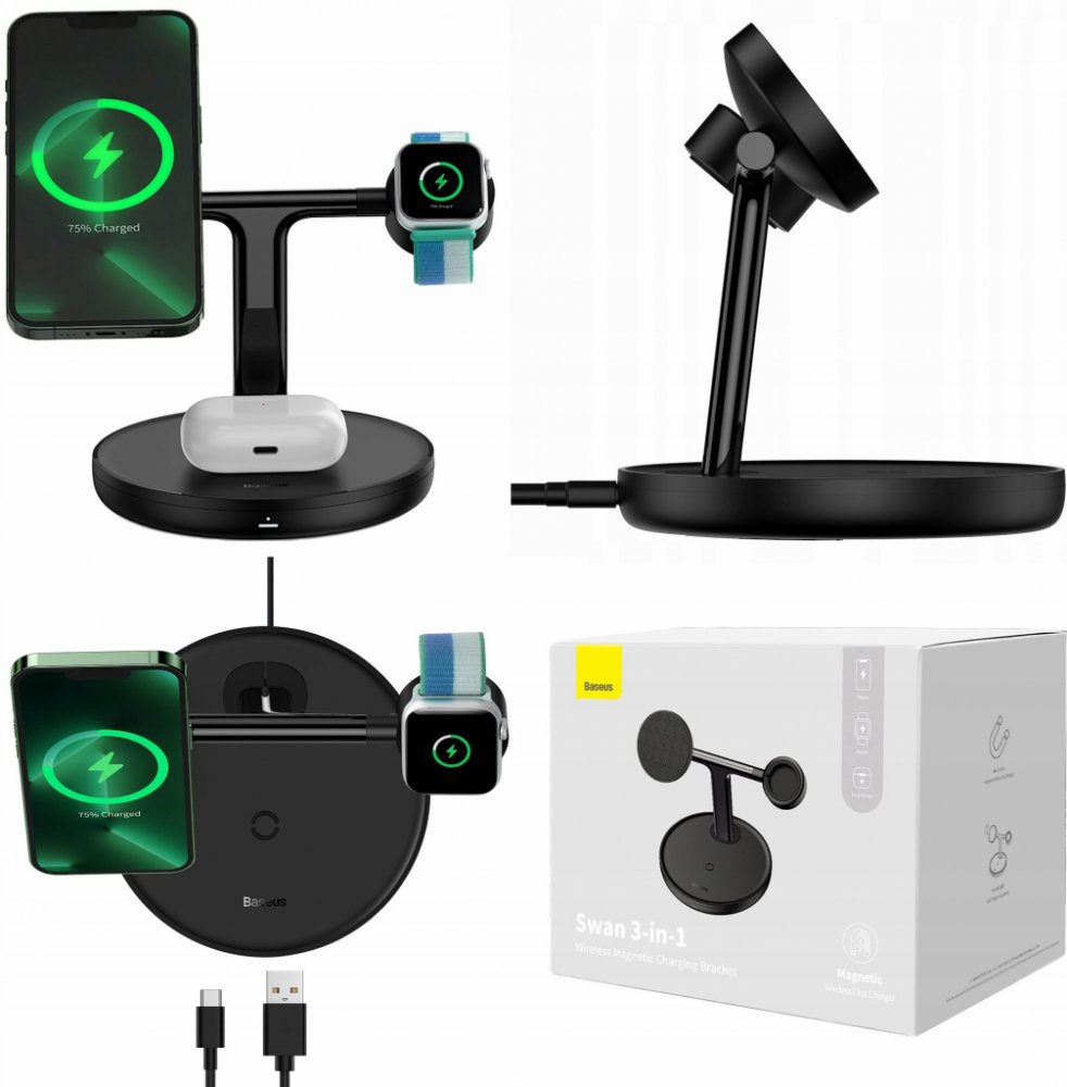 Baseus WXTE000101 Swan 3v1 Bezdrátový magnetický nabíjecí stojánek s nabíjecím výkonem 20W určený pro Apple iPhone s Magsafe, bezdrátová sluchátka a Apple Watch