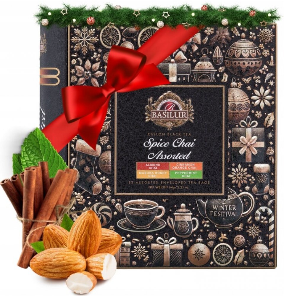 Basilur Spice Chai sada čajů v plechovce 4 ZIMNÍ PŘÍCHUTĚ - 32 ks KABELKYVánoční sada cejlonských čajů s přísadami.